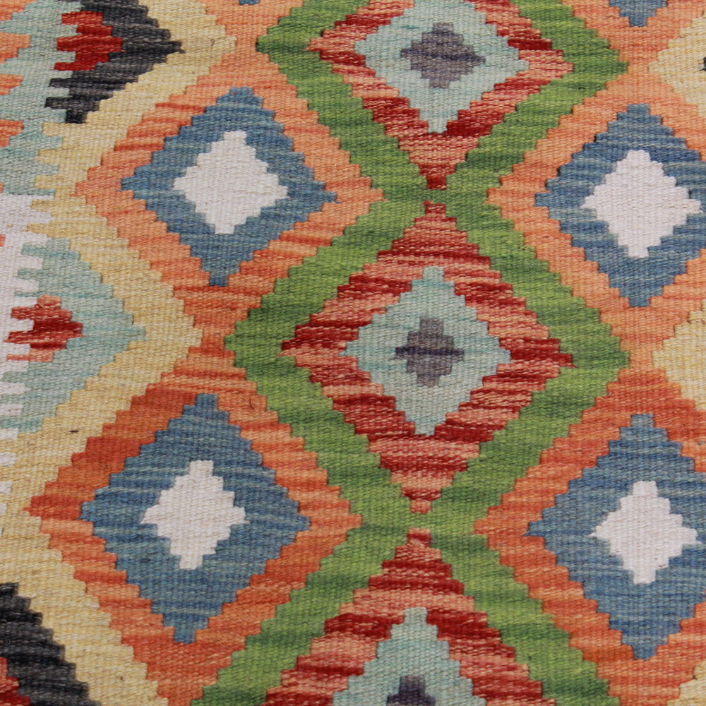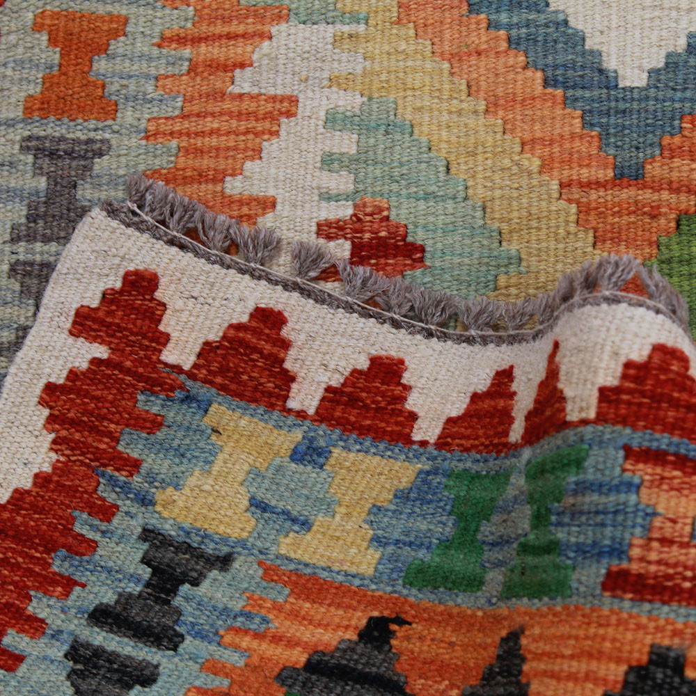 Afghan hand woven rugs, a masterpiece of Afghan craftsmanship, are highly appreciated and popular all over the world. These special hand woven rugs are typically denser and more compact than other types of Kelim due to a special weaving technique. This technique allows Afghan hand woven rugs to have a thinner texture and to be finished more quickly than knotted rugs. Chobi Kelim rug designs combine antique and modern elements, so that everyone can find a piece to suit their style. These hand woven rugs are particularly popular with interior designers as they blend harmoniously with the colours of most homes and are widely affordable due to their accessible price category. Chobi Kilim rugs can be used in a variety of ways to decorate a home, whether as a wall hanging rug or as a hallway rug. These ethnic rugs have a significant artistic and cultural value. Afghan hand woven rugs are not only aesthetically pleasing, but are also of great historical and cultural significance. Hand woven rugs preserve the rich tradition and heritage of Afghan craftsmanship, each one unique and unparalleled. The wool rugs, with their natural use of materials, help to create a homely and welcoming atmosphere.