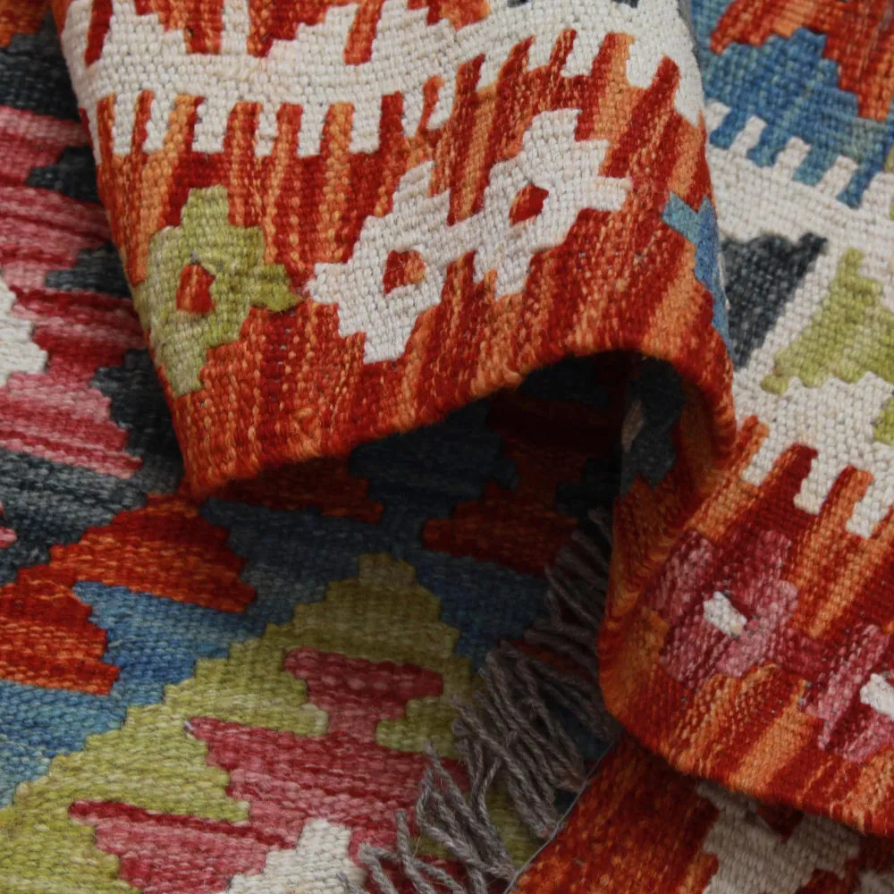 Decorating our homes is always a great pleasure, but choosing the right kilim rug can be a little more complicated than you think, as each one is more beautiful than the other. At CarpetDepo, we have a wide selection of unique Chobi Kelim rugs that can be a real gem in your home. Hand woven Chobi Kelim rugs are extremely beautiful and colourful, so they can create a stunning effect in any room. The varied colours and patterns of the Afghan wool Kelim rug will blend beautifully into your living room, bedroom or even kitchen. Kelim runner rugs are available specifically for corridors and hallways. The hand woven wool Kelim rug is easy to vacuum and clean, so you don't have to worry about taking care of it. The Chobi Kelim rug is made from 100% wool, which is extremely durable and long lasting. It is made in the Maymanah province, Afghanistan. During the manufacturing process, the Chobi Kelim rug is washed four times to ensure that the final colour is retained for long time. The Kelim was originally a nomadic rug. It was used by nomadic tribes to keep their tents warm. The weight of the Chobi Kelim makes it easy to use as a wall hanging rug, not only to cover the floor but also to decorate the walls. The quality of Afghan Wool Kelim rug is excellent, so you can be sure to enjoy its beauty for a long time. Thanks to the meticulous hand weaving, the Chobi Kelim rug will be a unique piece in your home and will create a truly special atmosphere. In the stock of the CarpetDepo carpet shop, you will find a wide range of beautiful and high quality wool Kelims. If the Chobi Kelim rug does not match your home, the CarpetDepo carpet store offers free returns, so you can order your Chobi Kelim rug with absolutely no risk.