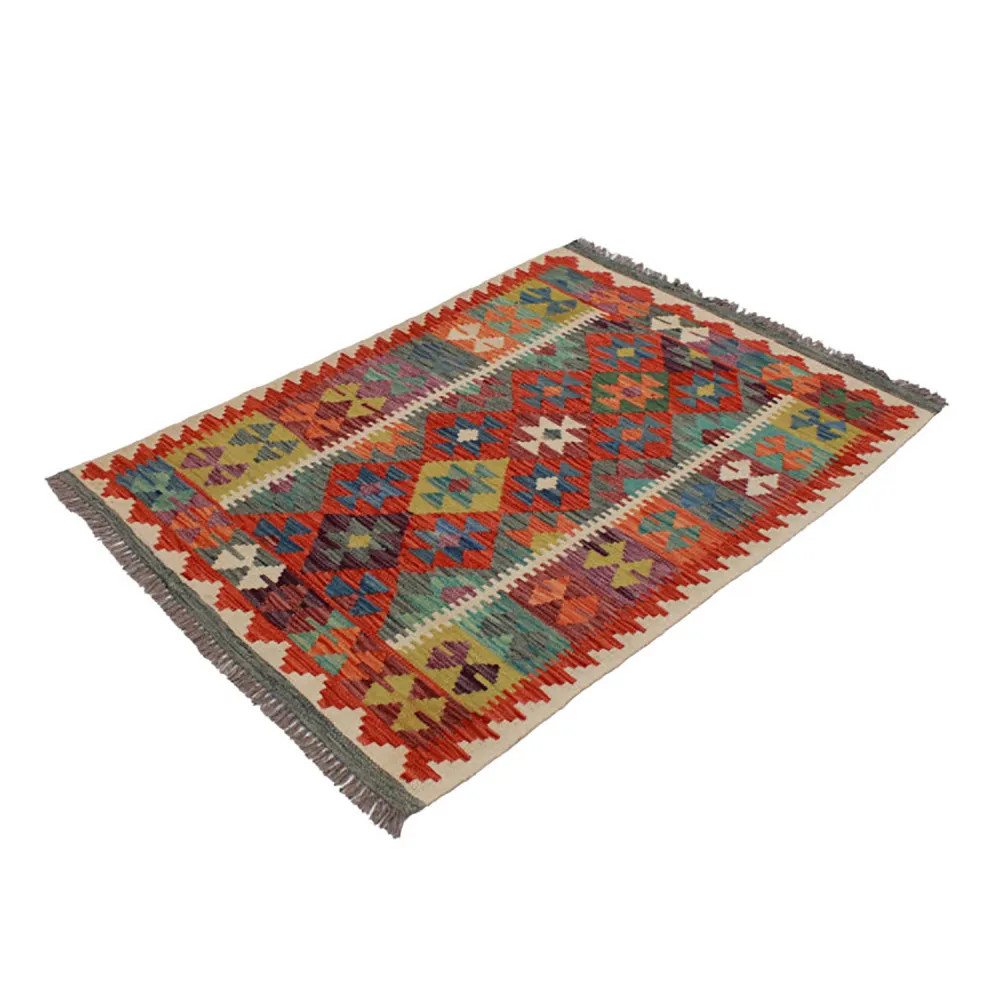 Chobi Kelim rugs are very popular all over the world. In Afghanistan, they are hand woven by nomads and villagers. This type of Afghan Kelim rug is denser and more compact than other Kelim rugs. They are woven using a special technique which makes them thinner and therefore relatively quicker to weave than traditional oriental rugs.. After making, they are washed four times and then sun-dried. Afghan Kelim rugs have a traditional warm antique design, but are often available in a more modern version. They are very popular, mainly because they blend perfectly with most room colours, and fall into the category of reasonably priced rugs. They can be used as a decorative feature in the home, as a wall rug or as a traditional floor covering. Kelim, is the perfect rug for the living room or even for hallways or corridors as a runner rug.
