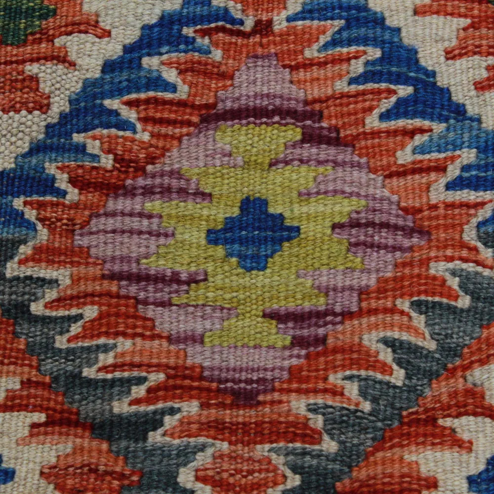 Chobi Kelim rugs are very popular all over the world. In Afghanistan, they are hand woven by nomads and villagers. This type of Afghan Kelim rug is denser and more compact than other Kelim rugs. They are woven using a special technique which makes them thinner and therefore relatively quicker to weave than traditional oriental rugs.. After making, they are washed four times and then sun-dried. Afghan Kelim rugs have a traditional warm antique design, but are often available in a more modern version. They are very popular, mainly because they blend perfectly with most room colours, and fall into the category of reasonably priced rugs. They can be used as a decorative feature in the home, as a wall rug or as a traditional floor covering. Kelim, is the perfect rug for the living room or even for hallways or corridors as a runner rug.