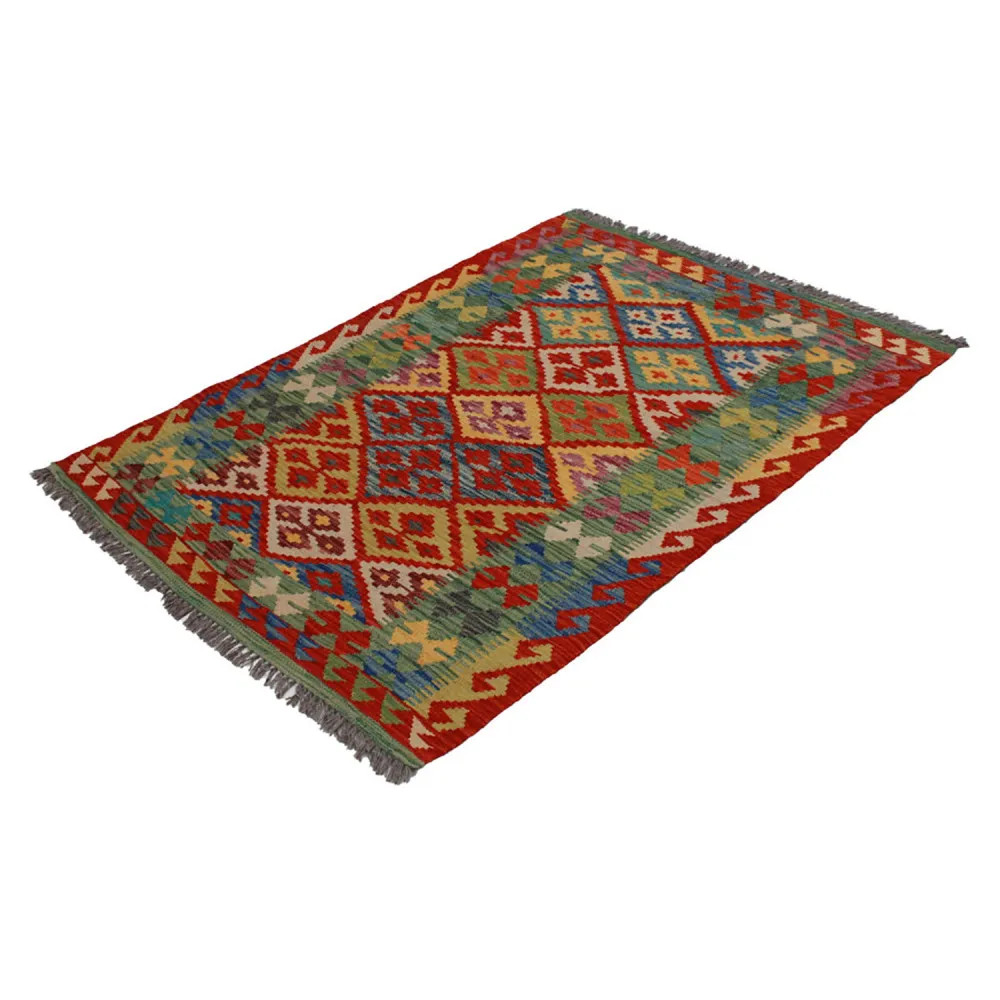 Chobi Kelim rugs are very popular all over the world. In Afghanistan, they are hand woven by nomads and villagers. This type of Afghan Kelim rug is denser and more compact than other Kelim rugs. They are woven using a special technique which makes them thinner and therefore relatively quicker to weave than traditional oriental rugs.. After making, they are washed four times and then sun-dried. Afghan Kelim rugs have a traditional warm antique design, but are often available in a more modern version. They are very popular, mainly because they blend perfectly with most room colours, and fall into the category of reasonably priced rugs. They can be used as a decorative feature in the home, as a wall rug or as a traditional floor covering. Kelim, is the perfect rug for the living room or even for hallways or corridors as a runner rug.