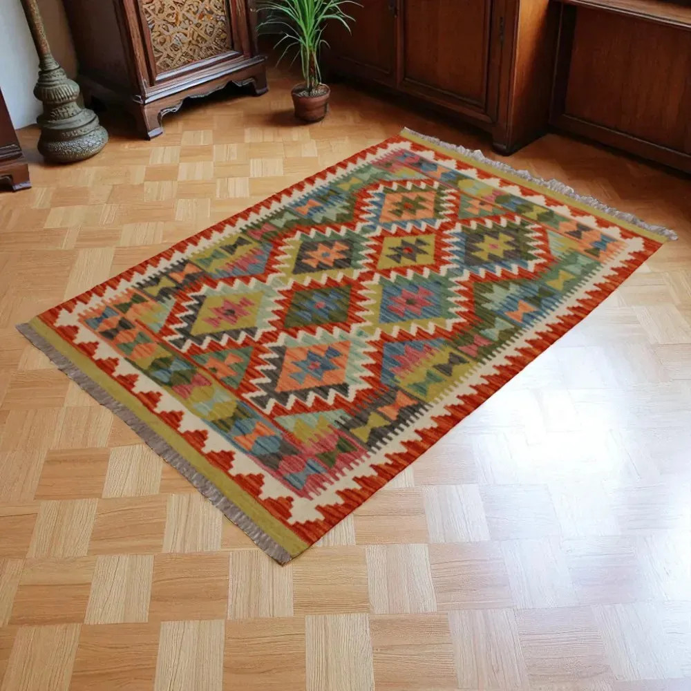 Decorating our homes is always a great pleasure, but choosing the right kilim rug can be a little more complicated than you think, as each one is more beautiful than the other. At CarpetDepo, we have a wide selection of unique Chobi Kelim rugs that can be a real gem in your home. Hand woven Chobi Kelim rugs are extremely beautiful and colourful, so they can create a stunning effect in any room. The varied colours and patterns of the Afghan wool Kelim rug will blend beautifully into your living room, bedroom or even kitchen. Kelim runner rugs are available specifically for corridors and hallways. The hand woven wool Kelim rug is easy to vacuum and clean, so you don't have to worry about taking care of it. The Chobi Kelim rug is made from 100% wool, which is extremely durable and long lasting. It is made in the Maymanah province, Afghanistan. During the manufacturing process, the Chobi Kelim rug is washed four times to ensure that the final colour is retained for long time. The Kelim was originally a nomadic rug. It was used by nomadic tribes to keep their tents warm. The weight of the Chobi Kelim makes it easy to use as a wall hanging rug, not only to cover the floor but also to decorate the walls. The quality of Afghan Wool Kelim rug is excellent, so you can be sure to enjoy its beauty for a long time. Thanks to the meticulous hand weaving, the Chobi Kelim rug will be a unique piece in your home and will create a truly special atmosphere. In the stock of the CarpetDepo carpet shop, you will find a wide range of beautiful and high quality wool Kelims. If the Chobi Kelim rug does not match your home, the CarpetDepo carpet store offers free returns, so you can order your Chobi Kelim rug with absolutely no risk.
