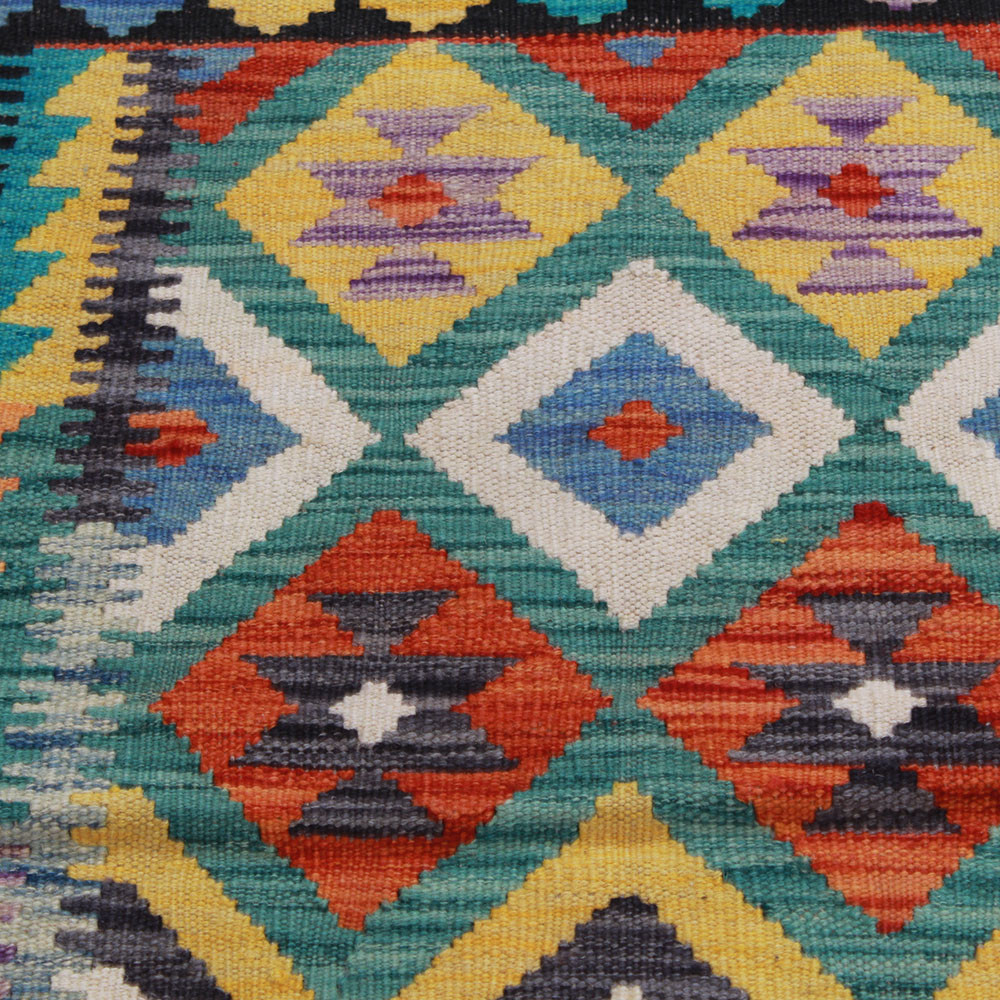 The Afghan hand woven Kelim Chobi rug is a perfect addition to any home, offering both style and functionality. Its Afghan wool Kilim design ensures it remains a centerpiece in your living space. Experience the charm and quality of this exquisite rug in your home.