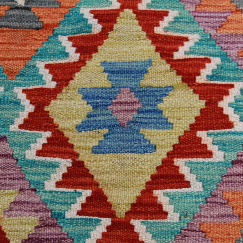Buying the perfect Kelim rug can sometimes be a difficult task, because each piece has an extraordinary beauty. At CarpetDepo Kelim shop, you will find a uniquely rich selection of small size Chobi Kelim rugs that can be a real decoration of any home. With its dazzling colours and patterns, a hand woven Kilim rug will make any room stunning. Made from Afghan wool, the varied colours and patterns of Kelim rugs are perfect for any room or even your wardrobe. The hand woven rugs are easy to vacuum and keep clean, so maintenance will be a breeze. Chobi Kelims are made from 100% wool which guarantees outstanding durability and long life. These Kilims are made in the Maymanah Province of Afghanistan, where the Kelims are washed four times after the manufacturing process to ensure that the final colour remains durable and vibrant. Kilim was originally a warming textile that was used by nomadic tribes in their tents. The light weight of the wool Kelim rug not only allows it to decorate floors, but when hung on a wall it can also be an excellent decorative element to adorn walls. The quality of the Afghan Kelim is unparalleled, so you can be sure to enjoy its beauty for a long time to come. Thanks to the delicate hand weaving, each Chobi Kelim rug will be a unique piece in your home, creating a special atmosphere. The CarpetDepo Kelim shop offers a wide range of beautiful and high quality wool Kelim rugs. If the Chobi Kelim carpet you have purchased does not suit your home perfectly, CarpetDepo offers you free return delivery of your Kelim, so you can choose and buy your wool Kelim rug without any risk.