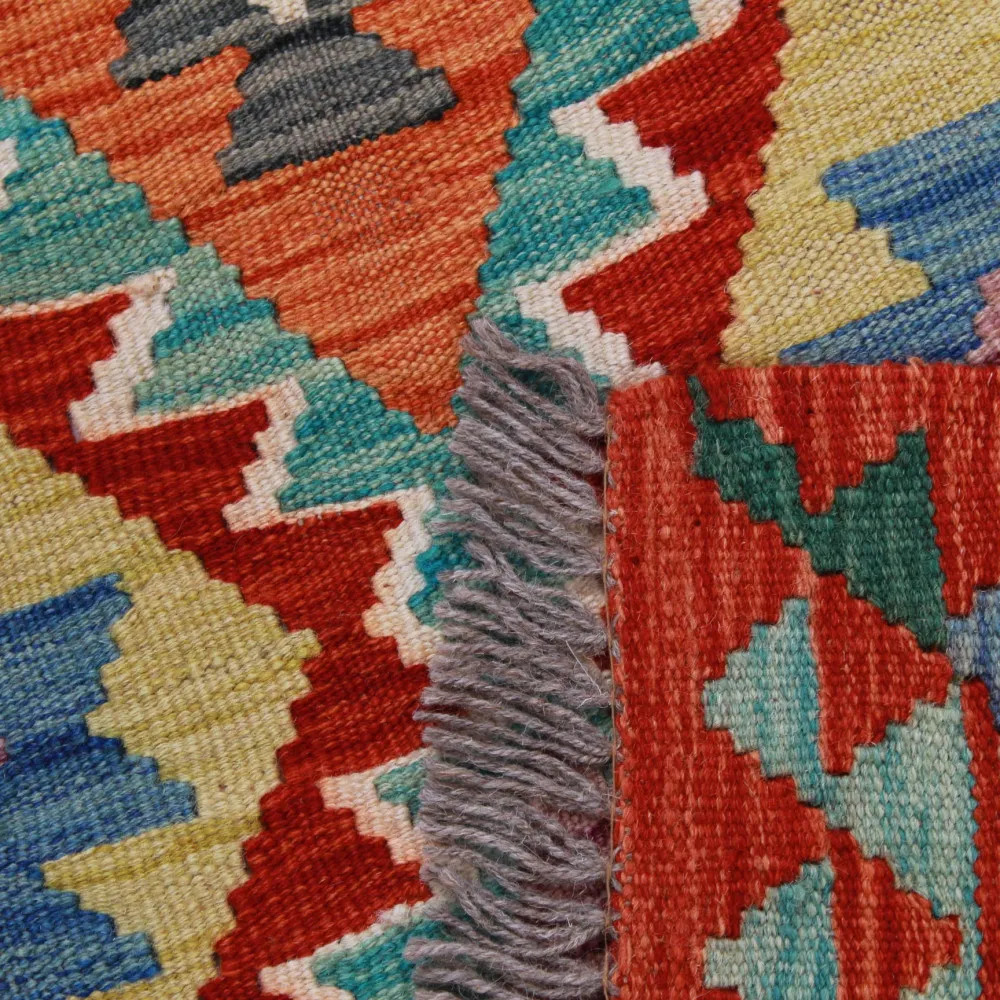 Afghan hand woven rugs, a masterpiece of Afghan craftsmanship, are highly appreciated and popular all over the world. These special hand woven rugs are typically denser and more compact than other types of Kelim due to a special weaving technique. This technique allows Afghan hand woven rugs to have a thinner texture and to be finished more quickly than knotted rugs. Chobi Kelim rug designs combine antique and modern elements, so that everyone can find a piece to suit their style. These hand woven rugs are particularly popular with interior designers as they blend harmoniously with the colours of most homes and are widely affordable due to their accessible price category. Chobi Kilim rugs can be used in a variety of ways to decorate a home, whether as a wall hanging rug or as a hallway rug. These ethnic rugs have a significant artistic and cultural value. Afghan hand woven rugs are not only aesthetically pleasing, but are also of great historical and cultural significance. Hand woven rugs preserve the rich tradition and heritage of Afghan craftsmanship, each one unique and unparalleled. The wool rugs, with their natural use of materials, help to create a homely and welcoming atmosphere.