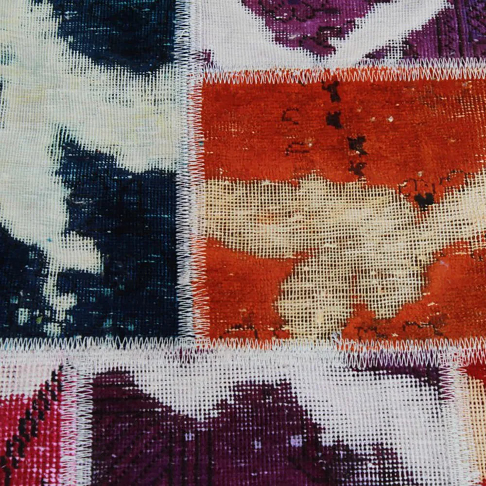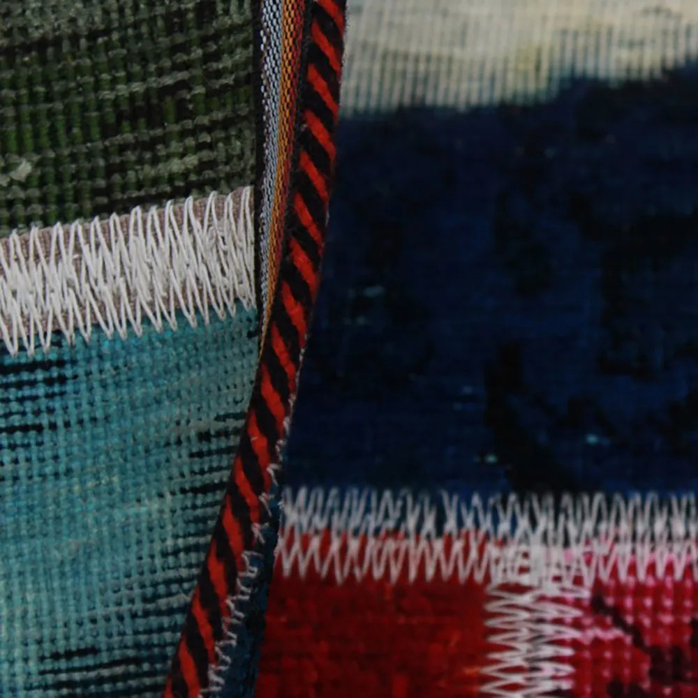Patchwork artistic design carpets are mainly made from Persian carpets, usually assembled from used carpets around 30-35 years old. It undergoes a special process in which the carpet is fully sanded, dyed and finally cut into different pieces. The best pieces are combined by skilled designers to create the best possible patchwork patterns. A carpet from different eras comes together to form a new whole.