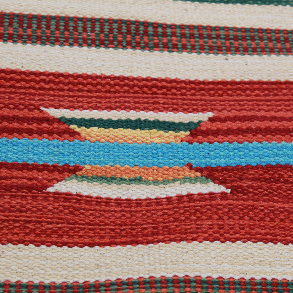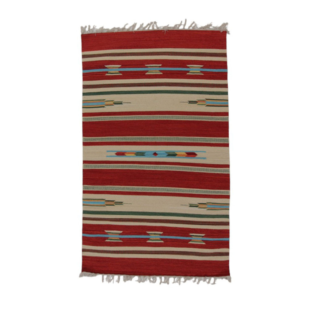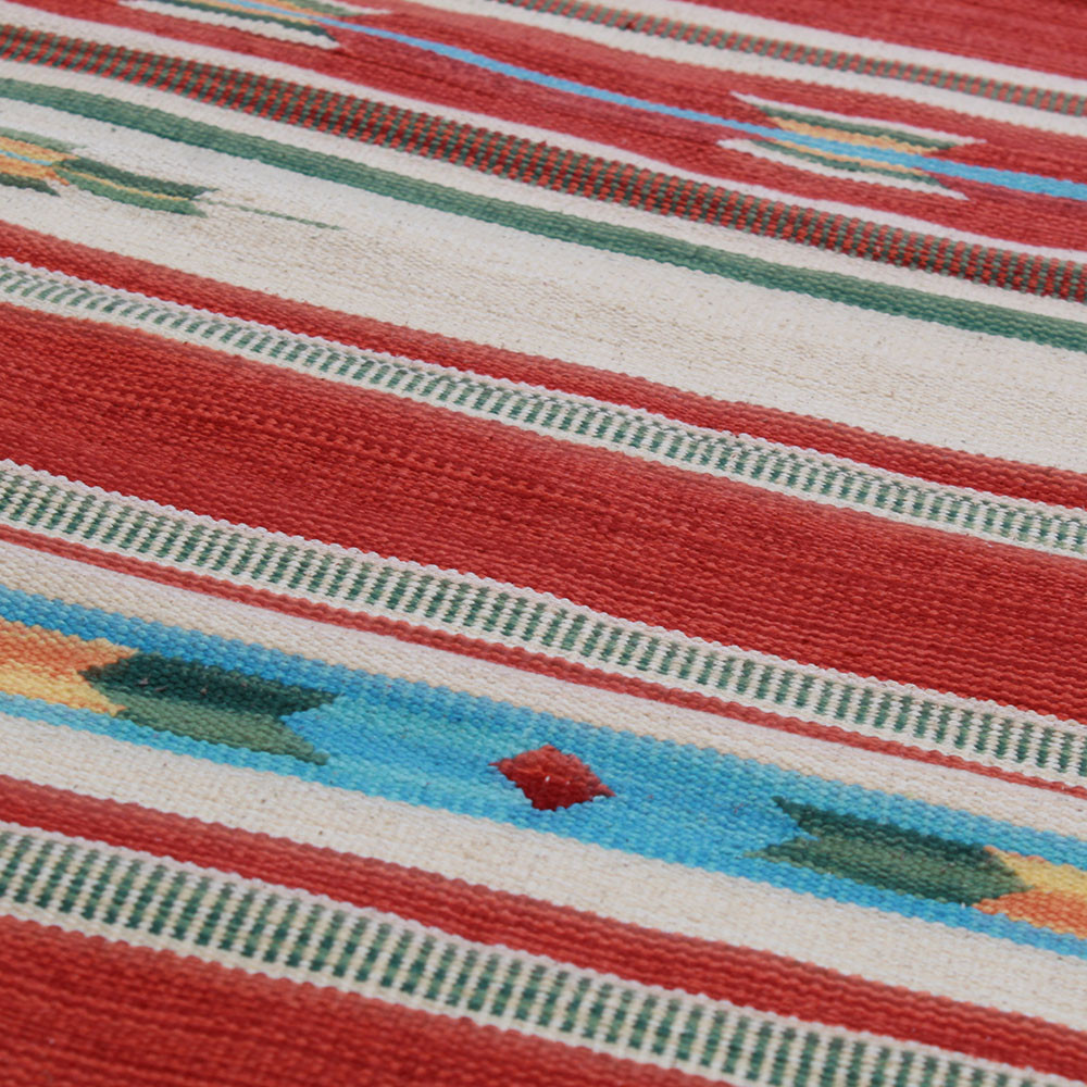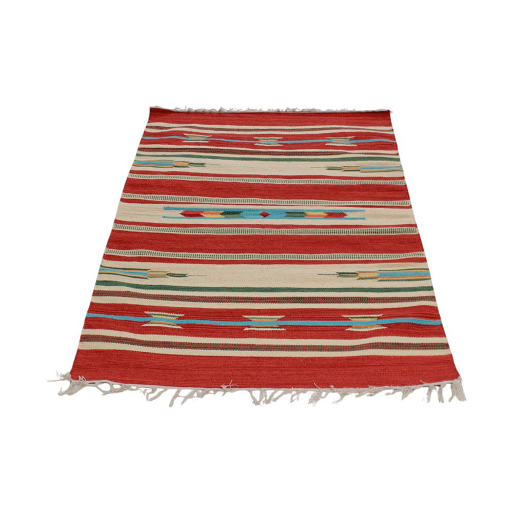 A special technique is used in the weaving of Indian kelim carpets, which means that kelim carpets are thinner but also faster than traditional oriental carpets. Their design is modern and consists of many colours. Kelim carpets are very popular, mainly because they fit perfectly into most homes and are in the inexpensive carpet category. Another name for this type of kelim carpet is rag rug. It is used for decorating the home, both as a wall carpet and as a floor covering. It can be used as living room carpet, runner carpet, hall carpet, kitchen carpet.