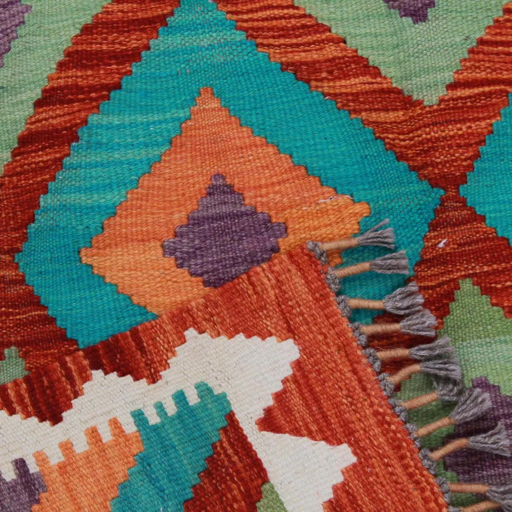 Afghan hand woven rugs, a masterpiece of Afghan craftsmanship, are highly appreciated and popular all over the world. These special hand woven rugs are typically denser and more compact than other types of Kelim due to a special weaving technique. This technique allows Afghan hand woven rugs to have a thinner texture and to be finished more quickly than knotted rugs. Chobi Kelim rug designs combine antique and modern elements, so that everyone can find a piece to suit their style. These hand woven rugs are particularly popular with interior designers as they blend harmoniously with the colours of most homes and are widely affordable due to their accessible price category. Chobi Kilim rugs can be used in a variety of ways to decorate a home, whether as a wall hanging rug or as a hallway rug. These ethnic rugs have a significant artistic and cultural value. Afghan hand woven rugs are not only aesthetically pleasing, but are also of great historical and cultural significance. Hand woven rugs preserve the rich tradition and heritage of Afghan craftsmanship, each one unique and unparalleled. The wool rugs, with their natural use of materials, help to create a homely and welcoming atmosphere.
