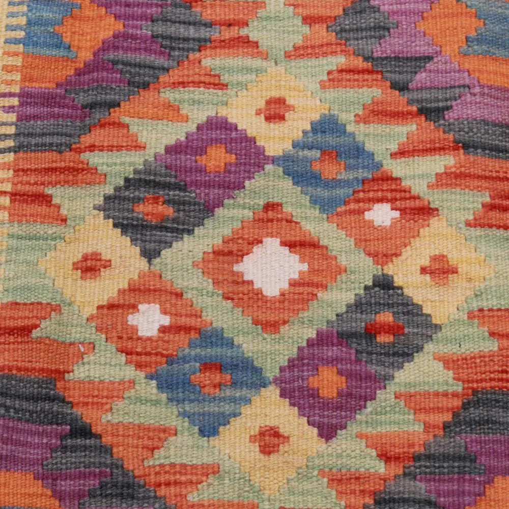 Buying the perfect Kelim rug can sometimes be a difficult task, because each piece has an extraordinary beauty. At CarpetDepo Kelim shop, you will find a uniquely rich selection of small size Chobi Kelim rugs that can be a real decoration of any home. With its dazzling colours and patterns, a hand woven Kilim rug will make any room stunning. Made from Afghan wool, the varied colours and patterns of Kelim rugs are perfect for any room or even your wardrobe. The hand woven rugs are easy to vacuum and keep clean, so maintenance will be a breeze. Chobi Kelims are made from 100% wool which guarantees outstanding durability and long life. These Kilims are made in the Maymanah Province of Afghanistan, where the Kelims are washed four times after the manufacturing process to ensure that the final colour remains durable and vibrant. Kilim was originally a warming textile that was used by nomadic tribes in their tents. The light weight of the wool Kelim rug not only allows it to decorate floors, but when hung on a wall it can also be an excellent decorative element to adorn walls. The quality of the Afghan Kelim is unparalleled, so you can be sure to enjoy its beauty for a long time to come. Thanks to the delicate hand weaving, each Chobi Kelim rug will be a unique piece in your home, creating a special atmosphere. The CarpetDepo Kelim shop offers a wide range of beautiful and high quality wool Kelim rugs. If the Chobi Kelim carpet you have purchased does not suit your home perfectly, CarpetDepo offers you free return delivery of your Kelim, so you can choose and buy your wool Kelim rug without any risk.