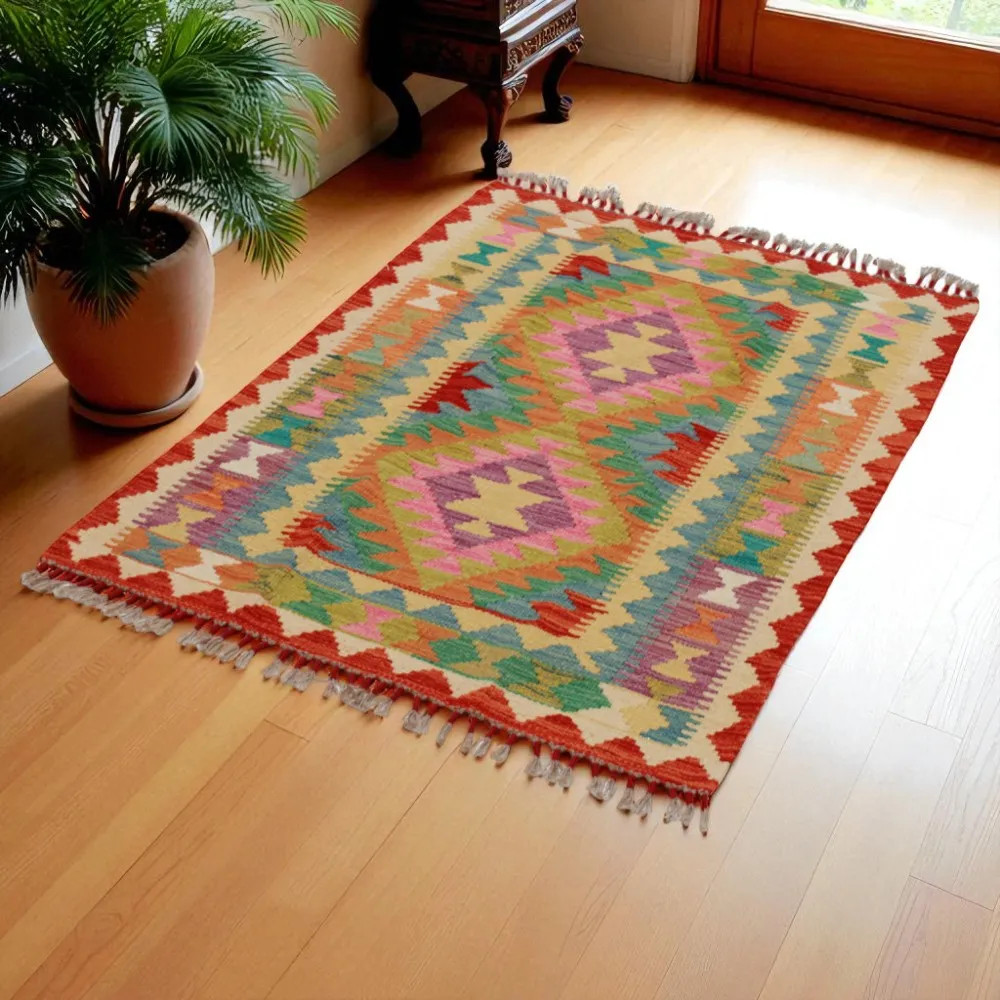 Occasionally it is a good idea to move the small Kelim rug to avoid damage caused by moths. Care should also be taken not to place excessively heavy furniture on Kilim, as this can damage the weave of the carpet over time. These cleaning techniques are also recommended for Afghan Kelim rugs and other wool Kelim rugs to keep the rugs clean and well cared for in your home.