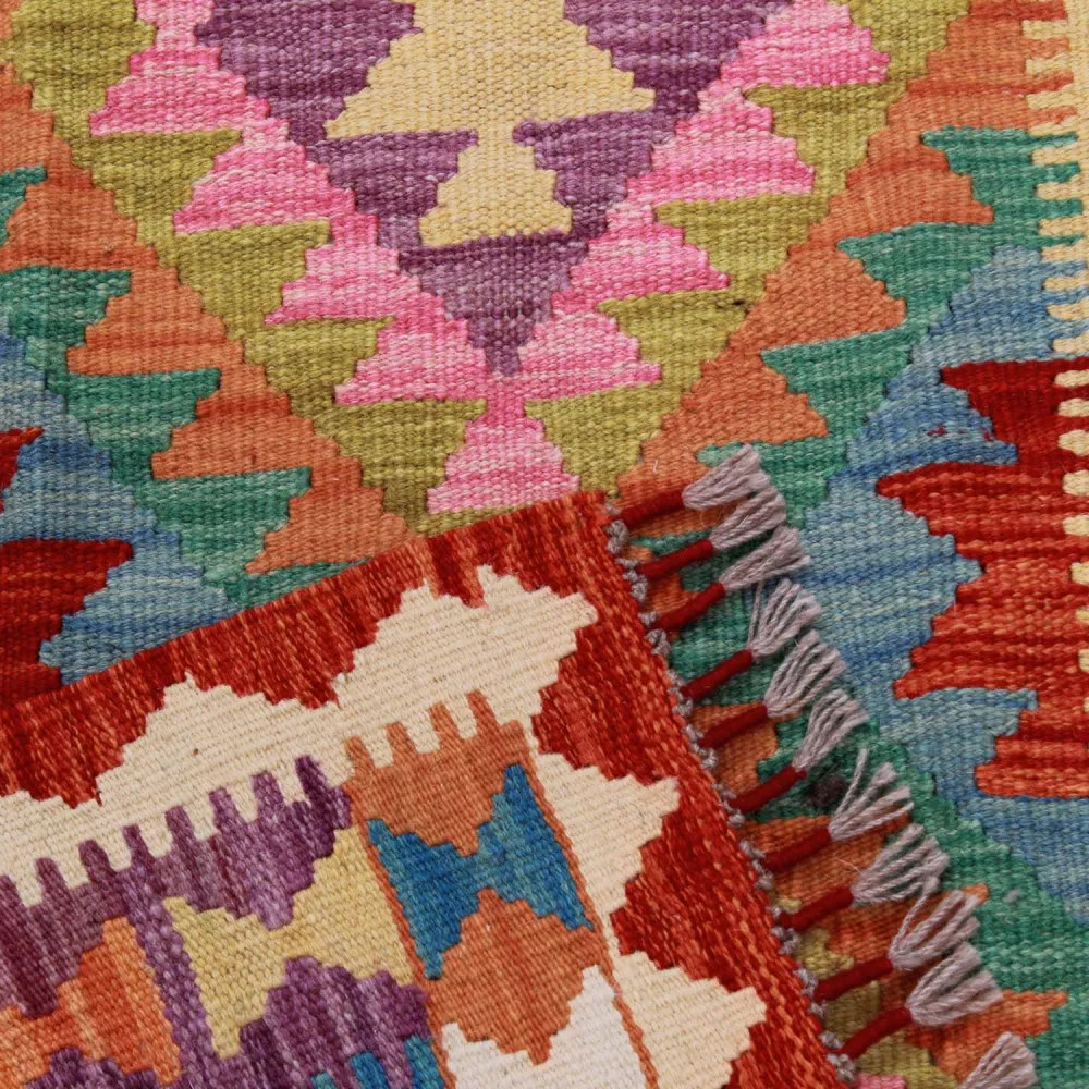 Afghan hand woven rugs, a masterpiece of Afghan craftsmanship, are highly appreciated and popular all over the world. These special hand woven rugs are typically denser and more compact than other types of Kelim due to a special weaving technique. This technique allows Afghan hand woven rugs to have a thinner texture and to be finished more quickly than knotted rugs. Chobi Kelim rug designs combine antique and modern elements, so that everyone can find a piece to suit their style. These hand woven rugs are particularly popular with interior designers as they blend harmoniously with the colours of most homes and are widely affordable due to their accessible price category. Chobi Kilim rugs can be used in a variety of ways to decorate a home, whether as a wall hanging rug or as a hallway rug. These ethnic rugs have a significant artistic and cultural value. Afghan hand woven rugs are not only aesthetically pleasing, but are also of great historical and cultural significance. Hand woven rugs preserve the rich tradition and heritage of Afghan craftsmanship, each one unique and unparalleled. The wool rugs, with their natural use of materials, help to create a homely and welcoming atmosphere.