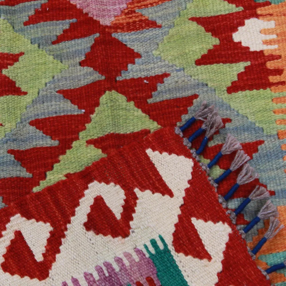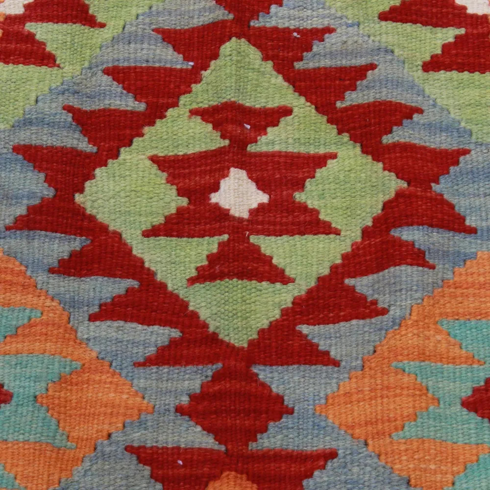 Buying the perfect Kelim rug can sometimes be a difficult task, because each piece has an extraordinary beauty. At CarpetDepo Kelim shop, you will find a uniquely rich selection of small size Chobi Kelim rugs that can be a real decoration of any home. With its dazzling colours and patterns, a hand woven Kilim rug will make any room stunning. Made from Afghan wool, the varied colours and patterns of Kelim rugs are perfect for any room or even your wardrobe. The hand woven rugs are easy to vacuum and keep clean, so maintenance will be a breeze. Chobi Kelims are made from 100% wool which guarantees outstanding durability and long life. These Kilims are made in the Maymanah Province of Afghanistan, where the Kelims are washed four times after the manufacturing process to ensure that the final colour remains durable and vibrant. Kilim was originally a warming textile that was used by nomadic tribes in their tents. The light weight of the wool Kelim rug not only allows it to decorate floors, but when hung on a wall it can also be an excellent decorative element to adorn walls. The quality of the Afghan Kelim is unparalleled, so you can be sure to enjoy its beauty for a long time to come. Thanks to the delicate hand weaving, each Chobi Kelim rug will be a unique piece in your home, creating a special atmosphere. The CarpetDepo Kelim shop offers a wide range of beautiful and high quality wool Kelim rugs. If the Chobi Kelim carpet you have purchased does not suit your home perfectly, CarpetDepo offers you free return delivery of your Kelim, so you can choose and buy your wool Kelim rug without any risk.