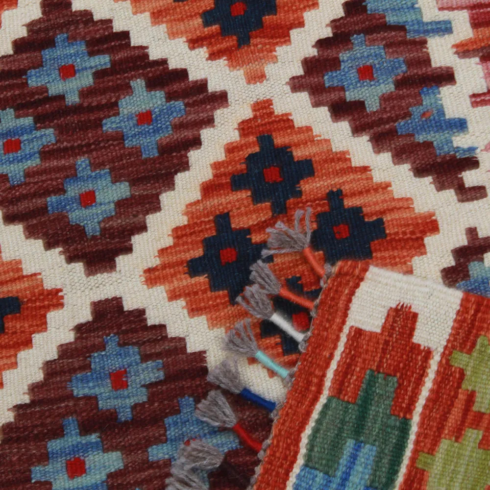 Afghan hand woven rugs, a masterpiece of Afghan craftsmanship, are highly appreciated and popular all over the world. These special hand woven rugs are typically denser and more compact than other types of Kelim due to a special weaving technique. This technique allows Afghan hand woven rugs to have a thinner texture and to be finished more quickly than knotted rugs. Chobi Kelim rug designs combine antique and modern elements, so that everyone can find a piece to suit their style. These hand woven rugs are particularly popular with interior designers as they blend harmoniously with the colours of most homes and are widely affordable due to their accessible price category. Chobi Kilim rugs can be used in a variety of ways to decorate a home, whether as a wall hanging rug or as a hallway rug. These ethnic rugs have a significant artistic and cultural value. Afghan hand woven rugs are not only aesthetically pleasing, but are also of great historical and cultural significance. Hand woven rugs preserve the rich tradition and heritage of Afghan craftsmanship, each one unique and unparalleled. The wool rugs, with their natural use of materials, help to create a homely and welcoming atmosphere.