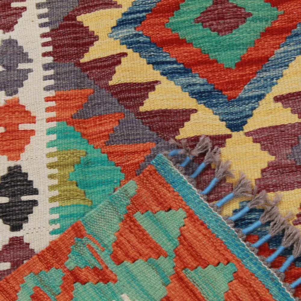 Afghan hand woven rugs, a masterpiece of Afghan craftsmanship, are highly appreciated and popular all over the world. These special hand woven rugs are typically denser and more compact than other types of Kelim due to a special weaving technique. This technique allows Afghan hand woven rugs to have a thinner texture and to be finished more quickly than knotted rugs. Chobi Kelim rug designs combine antique and modern elements, so that everyone can find a piece to suit their style. These hand woven rugs are particularly popular with interior designers as they blend harmoniously with the colours of most homes and are widely affordable due to their accessible price category. Chobi Kilim rugs can be used in a variety of ways to decorate a home, whether as a wall hanging rug or as a hallway rug. These ethnic rugs have a significant artistic and cultural value. Afghan hand woven rugs are not only aesthetically pleasing, but are also of great historical and cultural significance. Hand woven rugs preserve the rich tradition and heritage of Afghan craftsmanship, each one unique and unparalleled. The wool rugs, with their natural use of materials, help to create a homely and welcoming atmosphere.