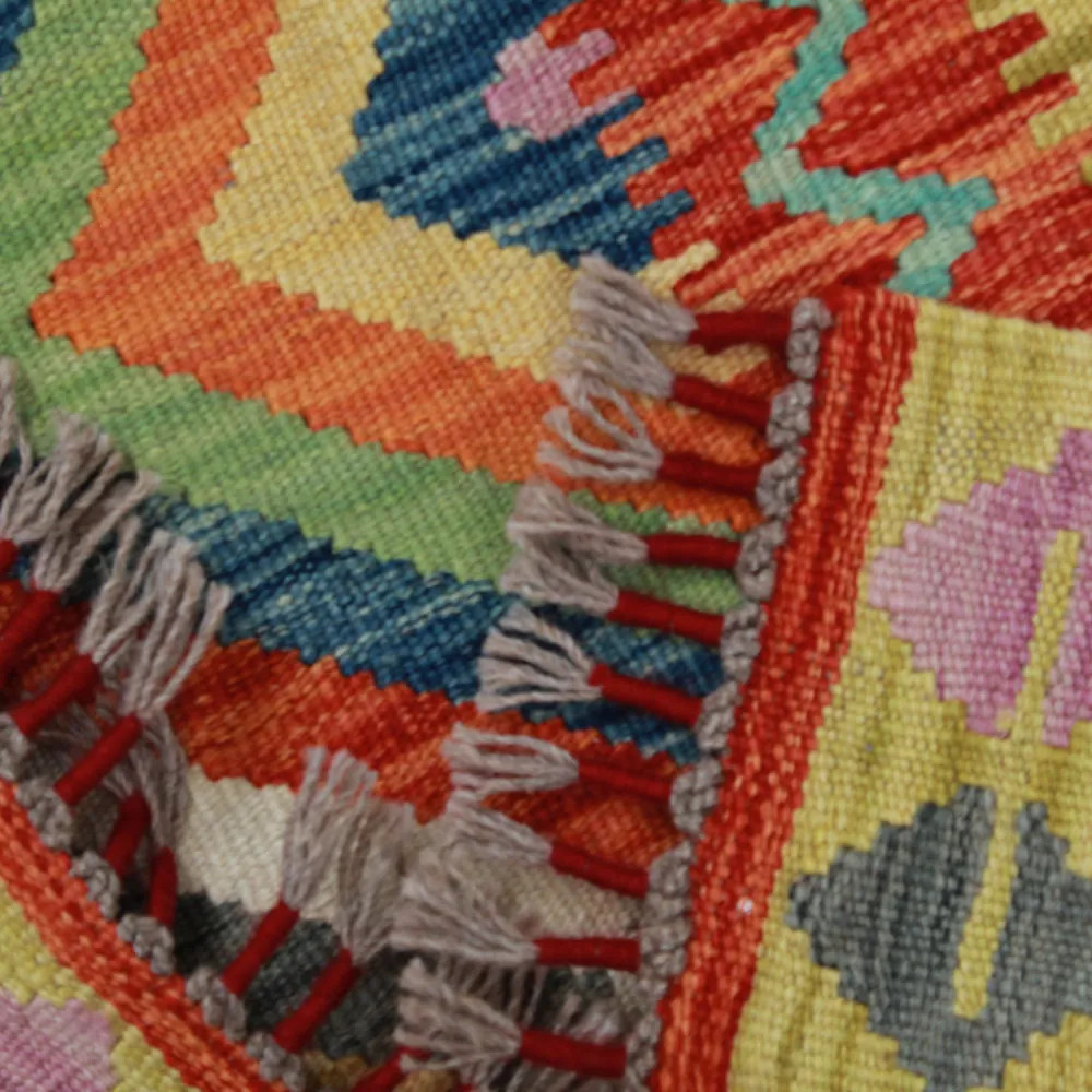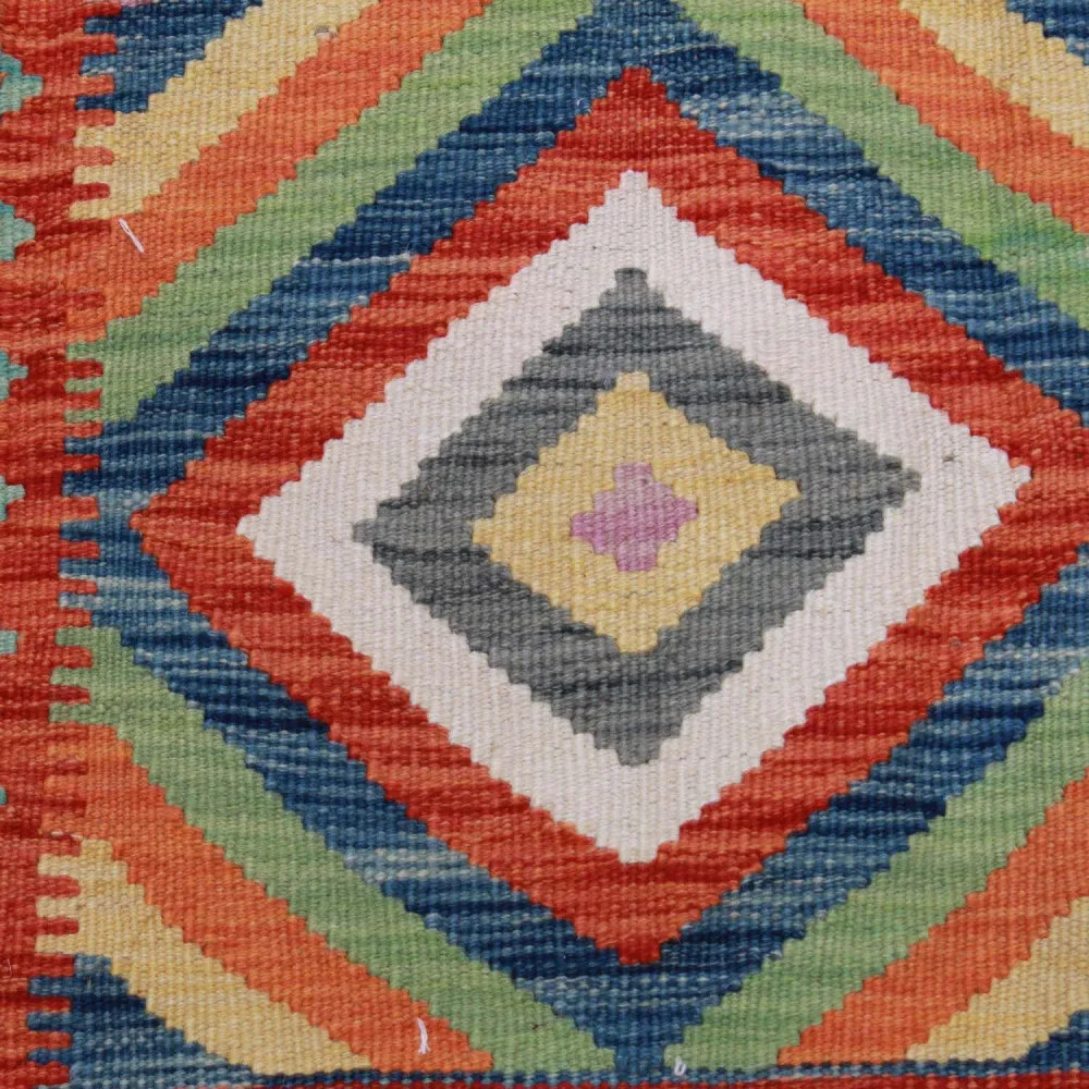 Buying the perfect Kelim rug can sometimes be a difficult task, because each piece has an extraordinary beauty. At CarpetDepo Kelim shop, you will find a uniquely rich selection of small size Chobi Kelim rugs that can be a real decoration of any home. With its dazzling colours and patterns, a hand woven Kilim rug will make any room stunning. Made from Afghan wool, the varied colours and patterns of Kelim rugs are perfect for any room or even your wardrobe. The hand woven rugs are easy to vacuum and keep clean, so maintenance will be a breeze. Chobi Kelims are made from 100% wool which guarantees outstanding durability and long life. These Kilims are made in the Maymanah Province of Afghanistan, where the Kelims are washed four times after the manufacturing process to ensure that the final colour remains durable and vibrant. Kilim was originally a warming textile that was used by nomadic tribes in their tents. The light weight of the wool Kelim rug not only allows it to decorate floors, but when hung on a wall it can also be an excellent decorative element to adorn walls. The quality of the Afghan Kelim is unparalleled, so you can be sure to enjoy its beauty for a long time to come. Thanks to the delicate hand weaving, each Chobi Kelim rug will be a unique piece in your home, creating a special atmosphere. The CarpetDepo Kelim shop offers a wide range of beautiful and high quality wool Kelim rugs. If the Chobi Kelim carpet you have purchased does not suit your home perfectly, CarpetDepo offers you free return delivery of your Kelim, so you can choose and buy your wool Kelim rug without any risk.