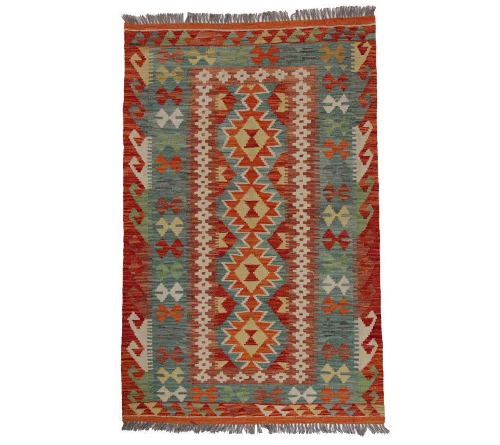 Chobi Kelim rugs are very popular all over the world. In Afghanistan, they are hand woven by nomads and villagers. This type of Afghan Kelim rug is denser and more compact than other Kelim rugs. They are woven using a special technique which makes them thinner and therefore relatively quicker to weave than traditional oriental rugs.. After making, they are washed four times and then sun-dried. Afghan Kelim rugs have a traditional warm antique design, but are often available in a more modern version. They are very popular, mainly because they blend perfectly with most room colours, and fall into the category of reasonably priced rugs. They can be used as a decorative feature in the home, as a wall rug or as a traditional floor covering. Kelim, is the perfect rug for the living room or even for hallways or corridors as a runner rug.