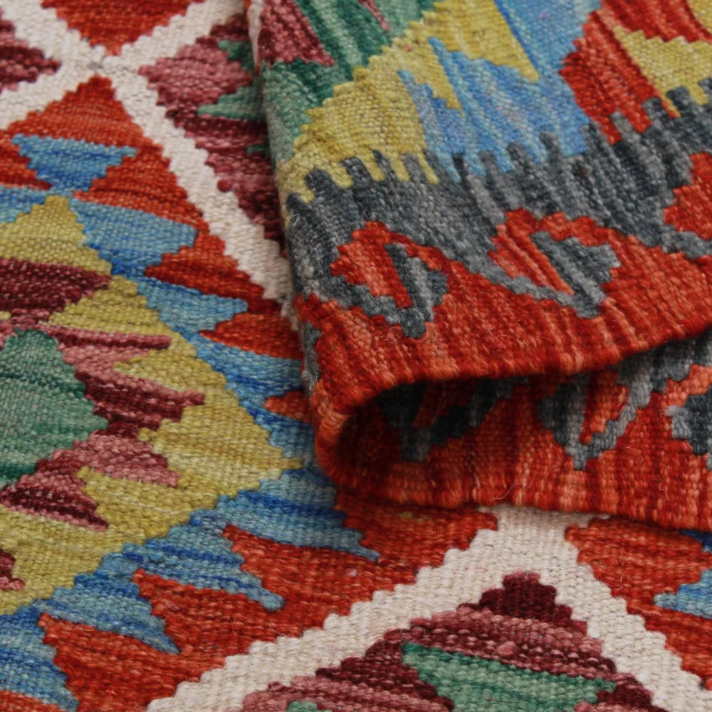 Decorating our homes is always a great pleasure, but choosing the right kilim rug can be a little more complicated than you think, as each one is more beautiful than the other. At CarpetDepo, we have a wide selection of unique Chobi Kelim rugs that can be a real gem in your home. Hand woven Chobi Kelim rugs are extremely beautiful and colourful, so they can create a stunning effect in any room. The varied colours and patterns of the Afghan wool Kelim rug will blend beautifully into your living room, bedroom or even kitchen. Kelim runner rugs are available specifically for corridors and hallways. The hand woven wool Kelim rug is easy to vacuum and clean, so you don't have to worry about taking care of it. The Chobi Kelim rug is made from 100% wool, which is extremely durable and long lasting. It is made in the Maymanah province, Afghanistan. During the manufacturing process, the Chobi Kelim rug is washed four times to ensure that the final colour is retained for long time. The Kelim was originally a nomadic rug. It was used by nomadic tribes to keep their tents warm. The weight of the Chobi Kelim makes it easy to use as a wall hanging rug, not only to cover the floor but also to decorate the walls. The quality of Afghan Wool Kelim rug is excellent, so you can be sure to enjoy its beauty for a long time. Thanks to the meticulous hand weaving, the Chobi Kelim rug will be a unique piece in your home and will create a truly special atmosphere. In the stock of the CarpetDepo carpet shop, you will find a wide range of beautiful and high quality wool Kelims. If the Chobi Kelim rug does not match your home, the CarpetDepo carpet store offers free returns, so you can order your Chobi Kelim rug with absolutely no risk.