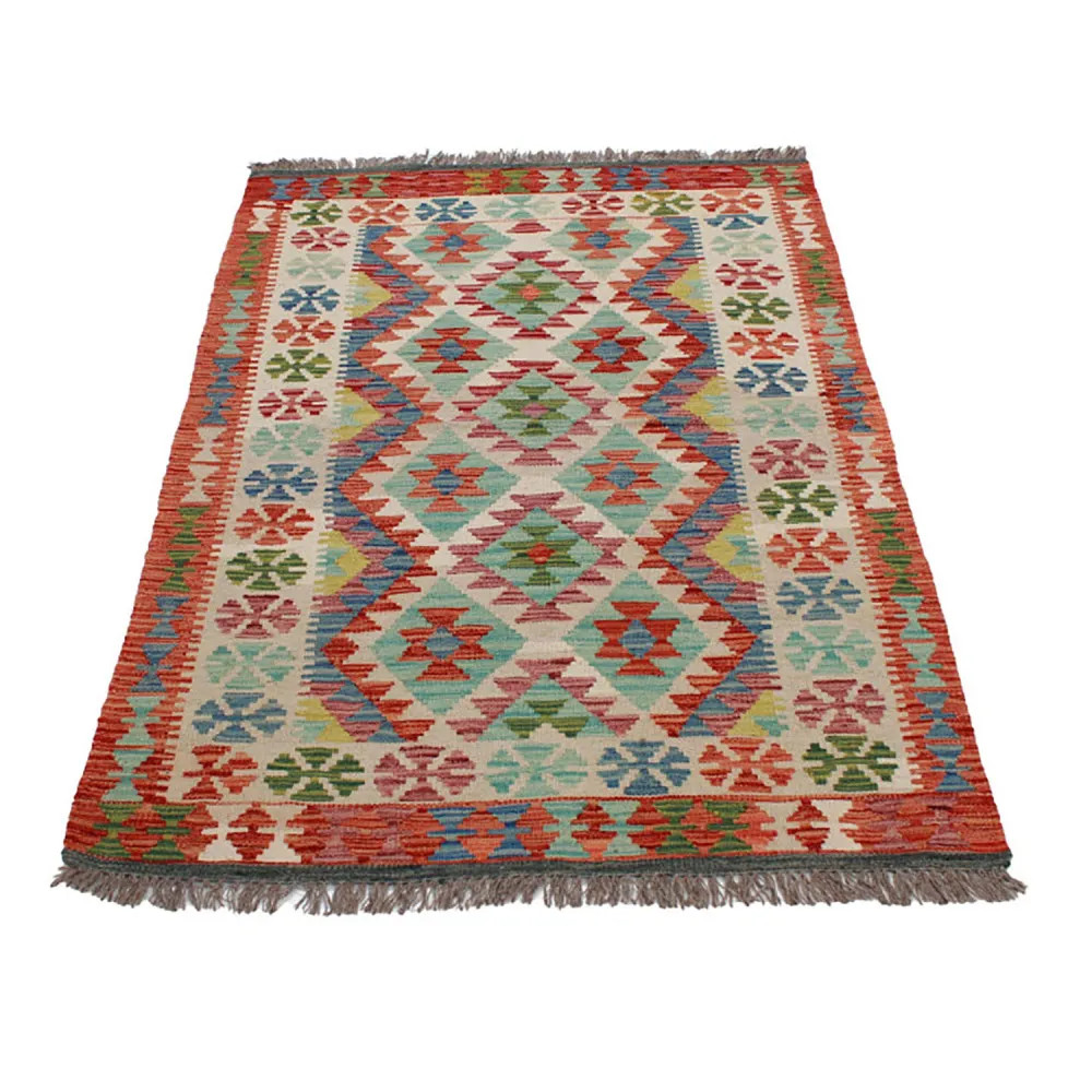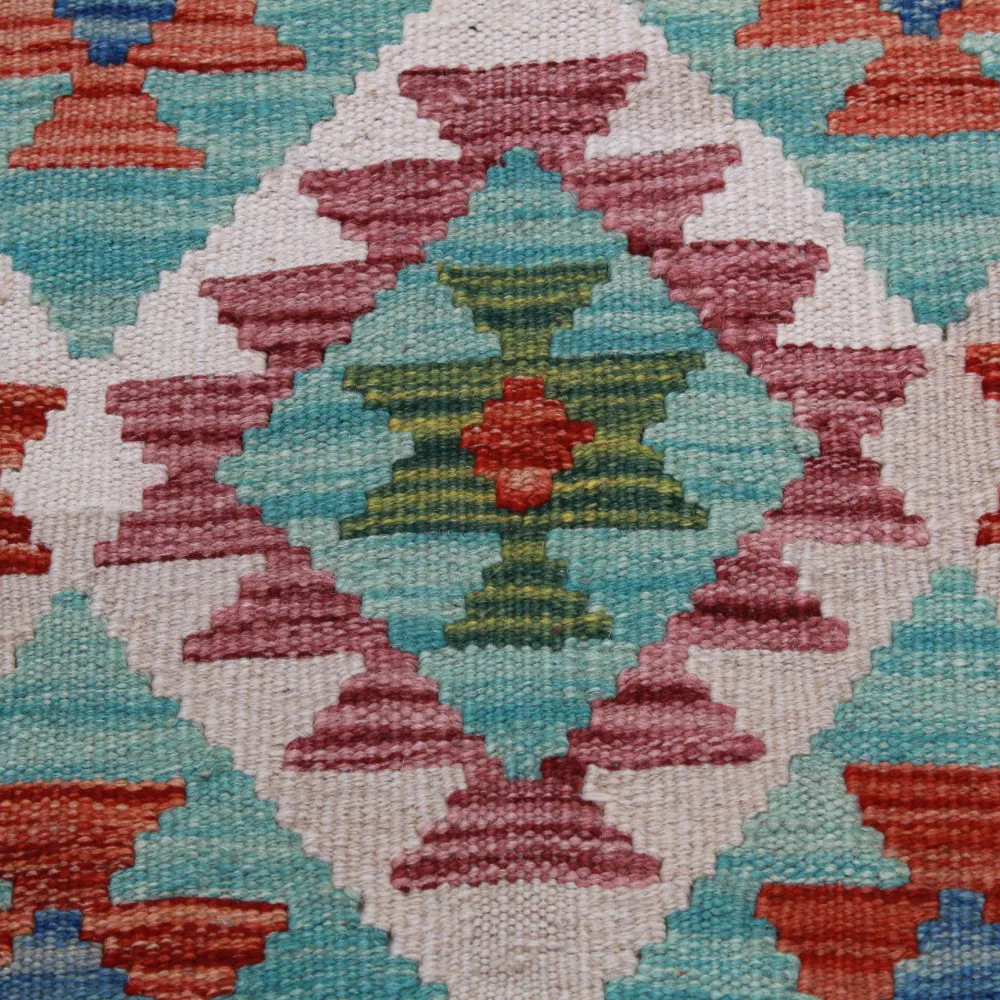 Chobi Kelim rugs are very popular all over the world. In Afghanistan, they are hand woven by nomads and villagers. This type of Afghan Kelim rug is denser and more compact than other Kelim rugs. They are woven using a special technique which makes them thinner and therefore relatively quicker to weave than traditional oriental rugs.. After making, they are washed four times and then sun-dried. Afghan Kelim rugs have a traditional warm antique design, but are often available in a more modern version. They are very popular, mainly because they blend perfectly with most room colours, and fall into the category of reasonably priced rugs. They can be used as a decorative feature in the home, as a wall rug or as a traditional floor covering. Kelim, is the perfect rug for the living room or even for hallways or corridors as a runner rug.