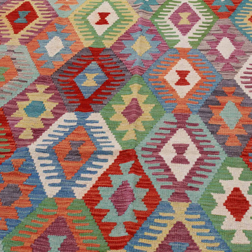 The hand woven Afghan Kilim rug is recognised and loved throughout the world. The unique characteristic of the Chobi Kelim rug is that it is denser and more compact than other ethnic Kelim rugs, due to its special weaving technique. This technique makes Afghan Kelim rugs thinner and faster to make than traditionally knotted rugs. The pattern of the Chobi Kilim rug is antique in style, but those who prefer modern designs can also find one to suit their taste. Authentic Kelim rugs are particularly popular because they blend in perfectly with most living room colour schemes and are among the most affordable rugs available. Chobi Kelim rugs can be used in many different ways to decorate your home. They can be used as wall hanging rugs or laid in the traditional way on the floor. These ethnic Kilim rugs are an ideal choice for the living room, where they can act as a focal point of the room. Afghan Kelim rugs have a special artistic value, which is notable not only for their aesthetic value, but also for their historical and cultural significance. Handmade Kelim rugs carry the heritage of Afghan craftsmanship and traditions, making each Kilim unique and unrepeatable. The wool Kelim rugs are made from natural materials, which contribute to the warm and welcoming atmosphere of the living room.