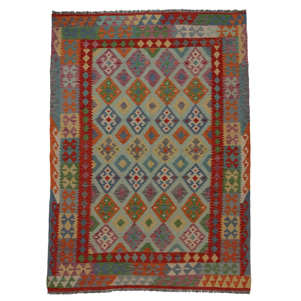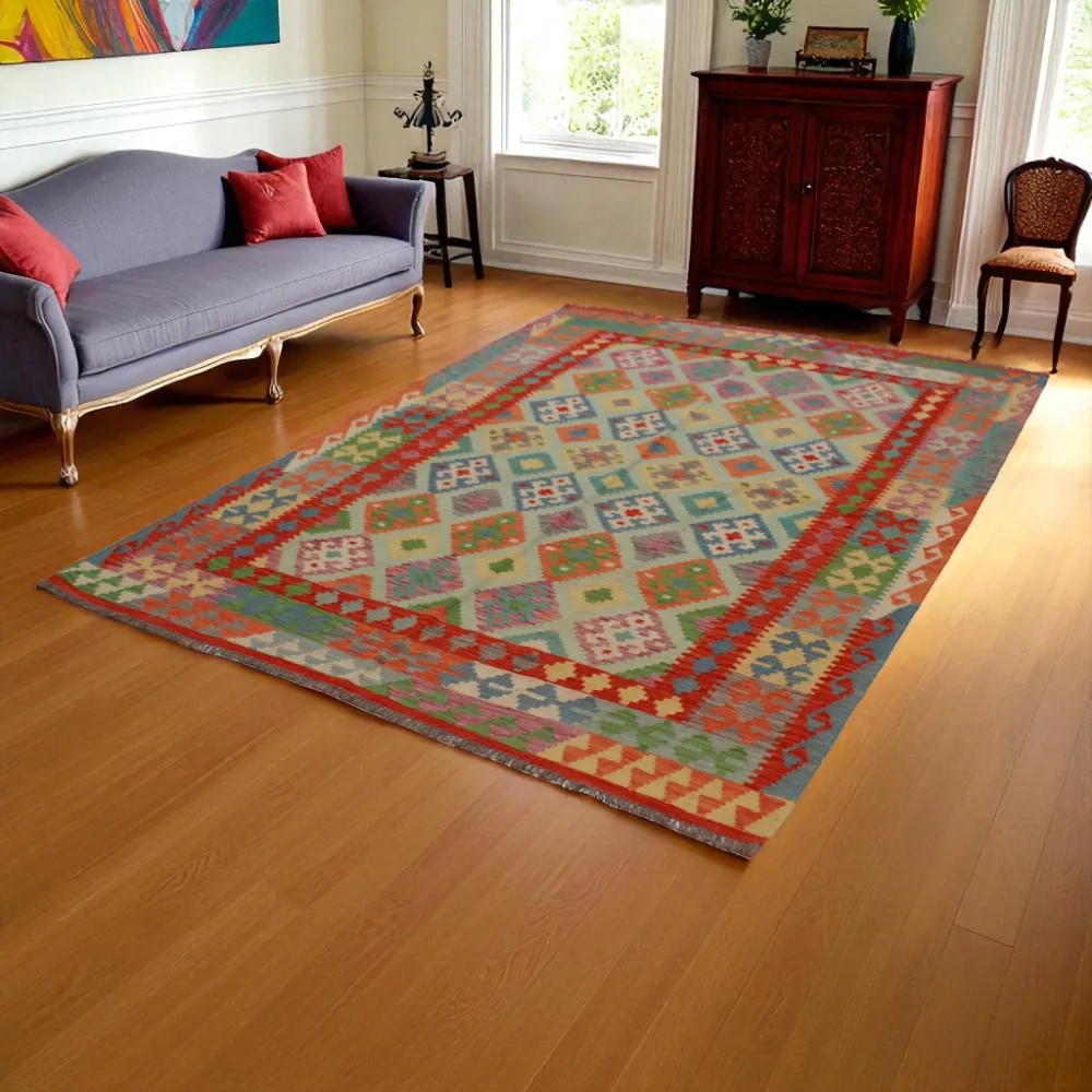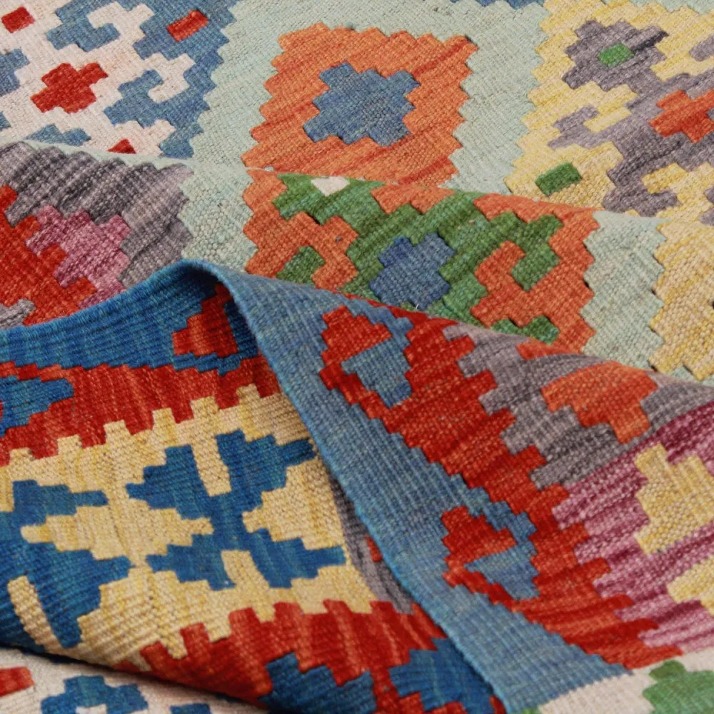 The hand woven Afghan Kilim rug is recognised and loved throughout the world. The unique characteristic of the Chobi Kelim rug is that it is denser and more compact than other ethnic Kelim rugs, due to its special weaving technique. This technique makes Afghan Kelim rugs thinner and faster to make than traditionally knotted rugs. The pattern of the Chobi Kilim rug is antique in style, but those who prefer modern designs can also find one to suit their taste. Authentic Kelim rugs are particularly popular because they blend in perfectly with most living room colour schemes and are among the most affordable rugs available. Chobi Kelim rugs can be used in many different ways to decorate your home. They can be used as wall hanging rugs or laid in the traditional way on the floor. These ethnic Kilim rugs are an ideal choice for the living room, where they can act as a focal point of the room. Afghan Kelim rugs have a special artistic value, which is notable not only for their aesthetic value, but also for their historical and cultural significance. Handmade Kelim rugs carry the heritage of Afghan craftsmanship and traditions, making each Kilim unique and unrepeatable. The wool Kelim rugs are made from natural materials, which contribute to the warm and welcoming atmosphere of the living room.