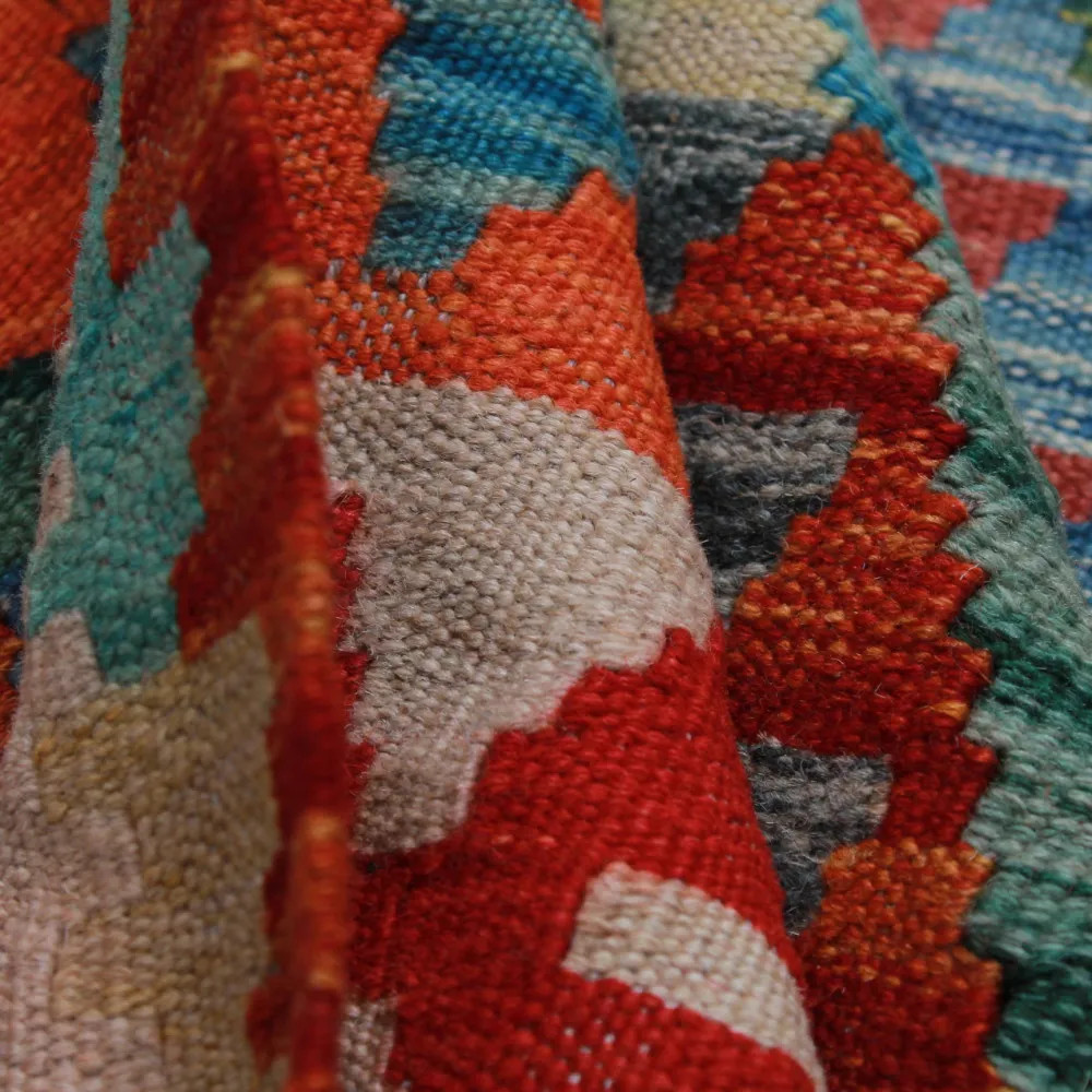 The hand woven Afghan Kilim rug is recognised and loved throughout the world. The unique characteristic of the Chobi Kelim rug is that it is denser and more compact than other ethnic Kelim rugs, due to its special weaving technique. This technique makes Afghan Kelim rugs thinner and faster to make than traditionally knotted rugs. The pattern of the Chobi Kilim rug is antique in style, but those who prefer modern designs can also find one to suit their taste. Authentic Kelim rugs are particularly popular because they blend in perfectly with most living room colour schemes and are among the most affordable rugs available. Chobi Kelim rugs can be used in many different ways to decorate your home. They can be used as wall hanging rugs or laid in the traditional way on the floor. These ethnic Kilim rugs are an ideal choice for the living room, where they can act as a focal point of the room. Afghan Kelim rugs have a special artistic value, which is notable not only for their aesthetic value, but also for their historical and cultural significance. Handmade Kelim rugs carry the heritage of Afghan craftsmanship and traditions, making each Kilim unique and unrepeatable. The wool Kelim rugs are made from natural materials, which contribute to the warm and welcoming atmosphere of the living room.