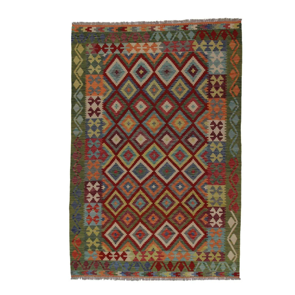 Ethnic Kilim rug Chobi 203x294 Handmade Afghan wool Kilim rug