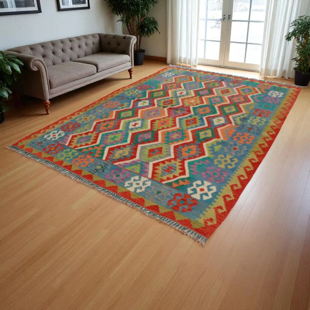 The hand woven Afghan Kilim rug is recognised and loved throughout the world. The unique characteristic of the Chobi Kelim rug is that it is denser and more compact than other ethnic Kelim rugs, due to its special weaving technique. This technique makes Afghan Kelim rugs thinner and faster to make than traditionally knotted rugs. The pattern of the Chobi Kilim rug is antique in style, but those who prefer modern designs can also find one to suit their taste. Authentic Kelim rugs are particularly popular because they blend in perfectly with most living room colour schemes and are among the most affordable rugs available. Chobi Kelim rugs can be used in many different ways to decorate your home. They can be used as wall hanging rugs or laid in the traditional way on the floor. These ethnic Kilim rugs are an ideal choice for the living room, where they can act as a focal point of the room. Afghan Kelim rugs have a special artistic value, which is notable not only for their aesthetic value, but also for their historical and cultural significance. Handmade Kelim rugs carry the heritage of Afghan craftsmanship and traditions, making each Kilim unique and unrepeatable. The wool Kelim rugs are made from natural materials, which contribute to the warm and welcoming atmosphere of the living room.
