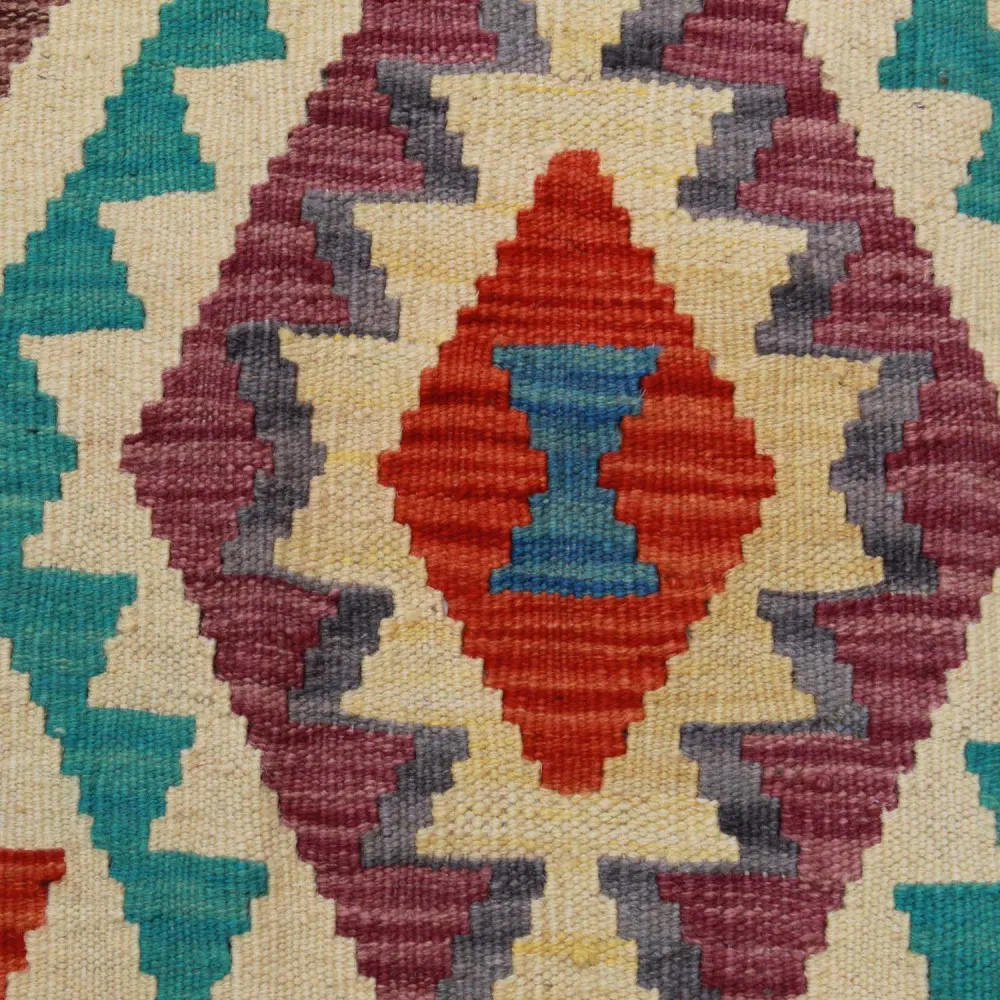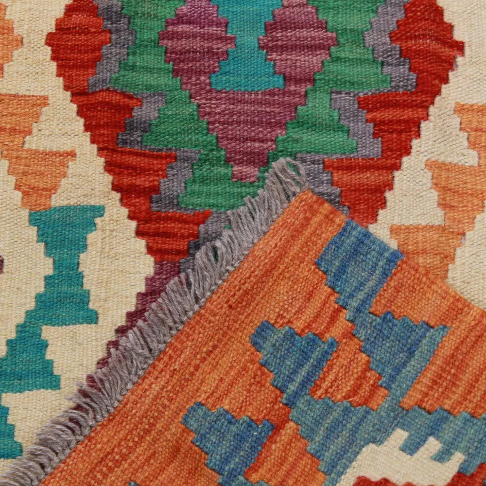 Afghan hand woven rugs, a masterpiece of Afghan craftsmanship, are highly appreciated and popular all over the world. These special hand woven rugs are typically denser and more compact than other types of Kelim due to a special weaving technique. This technique allows Afghan hand woven rugs to have a thinner texture and to be finished more quickly than knotted rugs. Chobi Kelim rug designs combine antique and modern elements, so that everyone can find a piece to suit their style. These hand woven rugs are particularly popular with interior designers as they blend harmoniously with the colours of most homes and are widely affordable due to their accessible price category. Chobi Kilim rugs can be used in a variety of ways to decorate a home, whether as a wall hanging rug or as a hallway rug. These ethnic rugs have a significant artistic and cultural value. Afghan hand woven rugs are not only aesthetically pleasing, but are also of great historical and cultural significance. Hand woven rugs preserve the rich tradition and heritage of Afghan craftsmanship, each one unique and unparalleled. The wool rugs, with their natural use of materials, help to create a homely and welcoming atmosphere.
