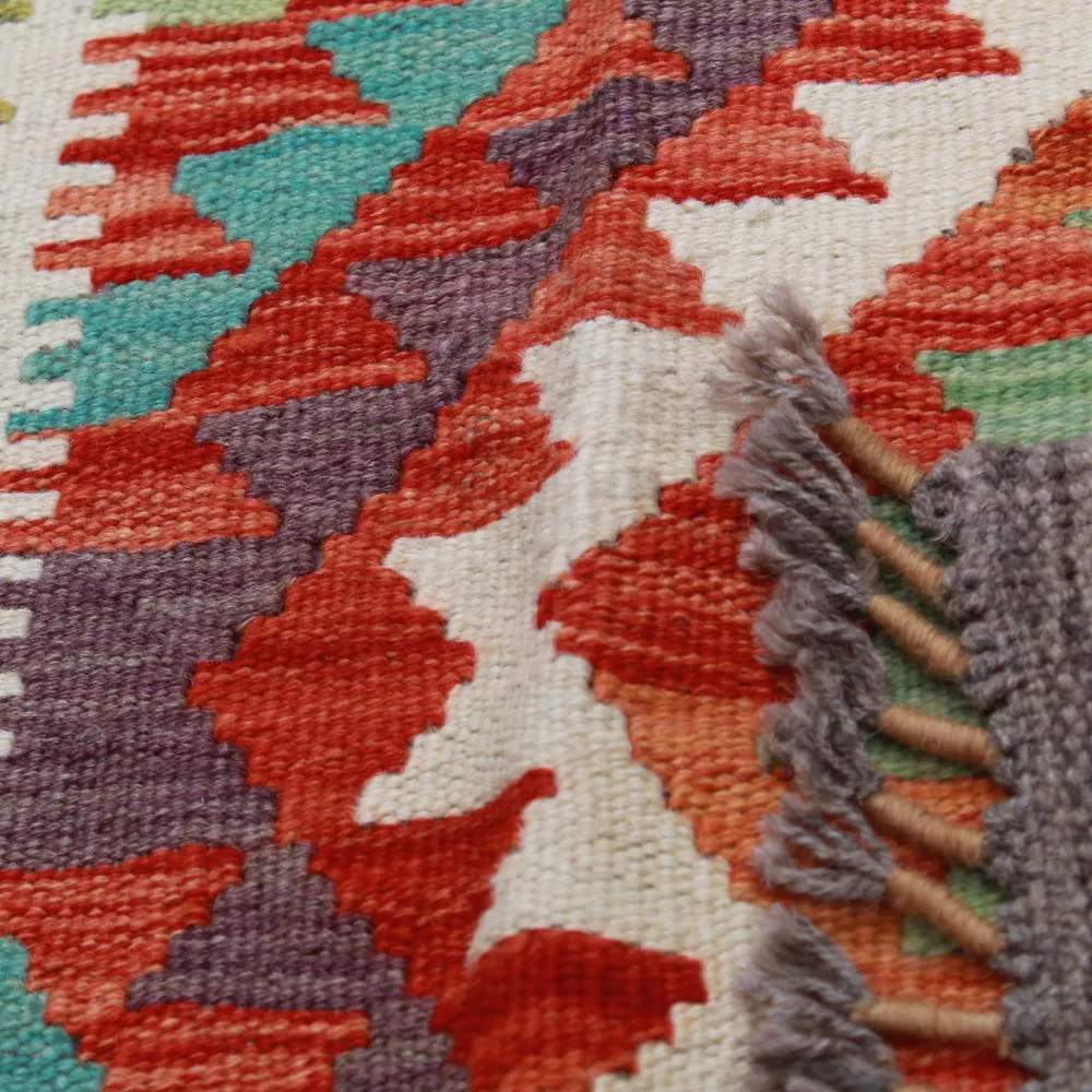 Afghan hand woven rugs, a masterpiece of Afghan craftsmanship, are highly appreciated and popular all over the world. These special hand woven rugs are typically denser and more compact than other types of Kelim due to a special weaving technique. This technique allows Afghan hand woven rugs to have a thinner texture and to be finished more quickly than knotted rugs. Chobi Kelim rug designs combine antique and modern elements, so that everyone can find a piece to suit their style. These hand woven rugs are particularly popular with interior designers as they blend harmoniously with the colours of most homes and are widely affordable due to their accessible price category. Chobi Kilim rugs can be used in a variety of ways to decorate a home, whether as a wall hanging rug or as a hallway rug. These ethnic rugs have a significant artistic and cultural value. Afghan hand woven rugs are not only aesthetically pleasing, but are also of great historical and cultural significance. Hand woven rugs preserve the rich tradition and heritage of Afghan craftsmanship, each one unique and unparalleled. The wool rugs, with their natural use of materials, help to create a homely and welcoming atmosphere.