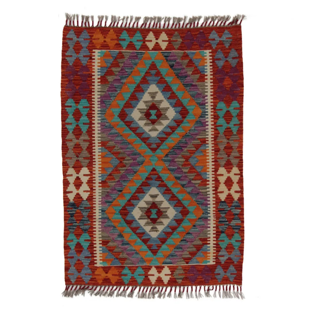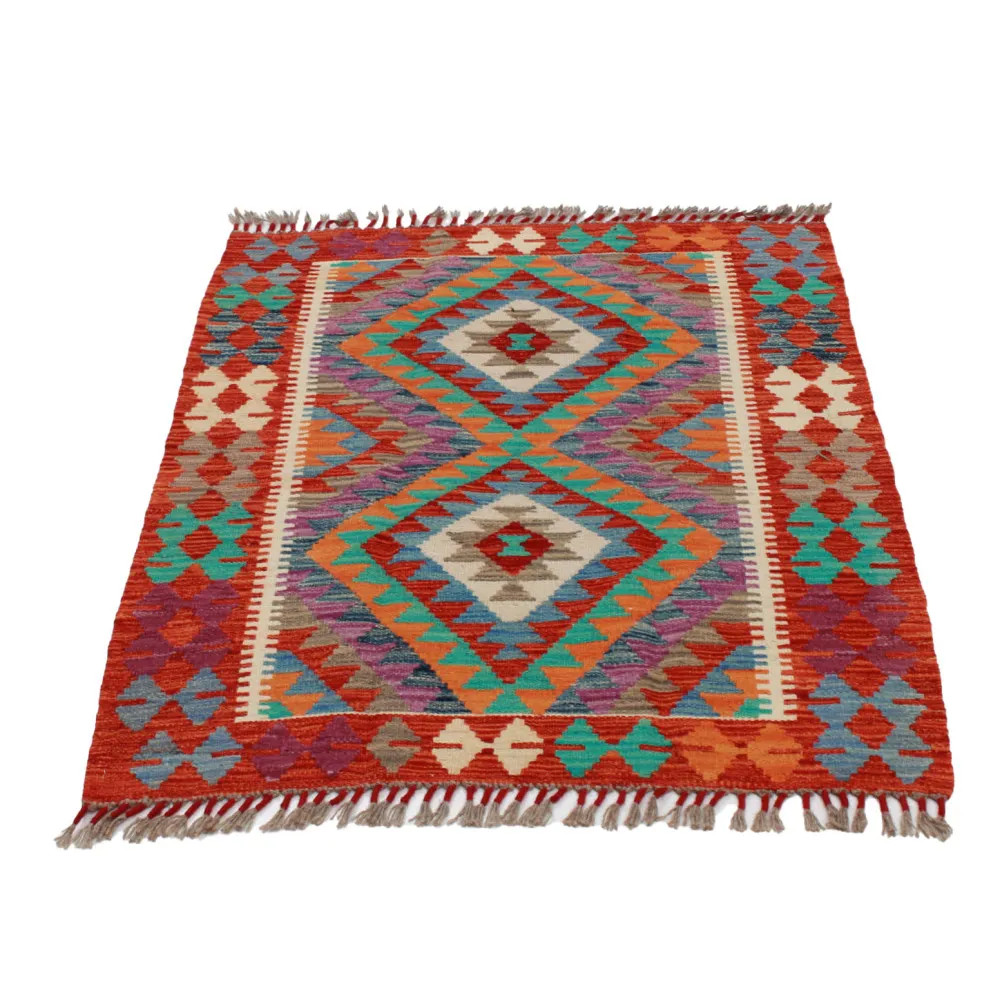 Afghan hand woven rugs, a masterpiece of Afghan craftsmanship, are highly appreciated and popular all over the world. These special hand woven rugs are typically denser and more compact than other types of Kelim due to a special weaving technique. This technique allows Afghan hand woven rugs to have a thinner texture and to be finished more quickly than knotted rugs. Chobi Kelim rug designs combine antique and modern elements, so that everyone can find a piece to suit their style. These hand woven rugs are particularly popular with interior designers as they blend harmoniously with the colours of most homes and are widely affordable due to their accessible price category. Chobi Kilim rugs can be used in a variety of ways to decorate a home, whether as a wall hanging rug or as a hallway rug. These ethnic rugs have a significant artistic and cultural value. Afghan hand woven rugs are not only aesthetically pleasing, but are also of great historical and cultural significance. Hand woven rugs preserve the rich tradition and heritage of Afghan craftsmanship, each one unique and unparalleled. The wool rugs, with their natural use of materials, help to create a homely and welcoming atmosphere.