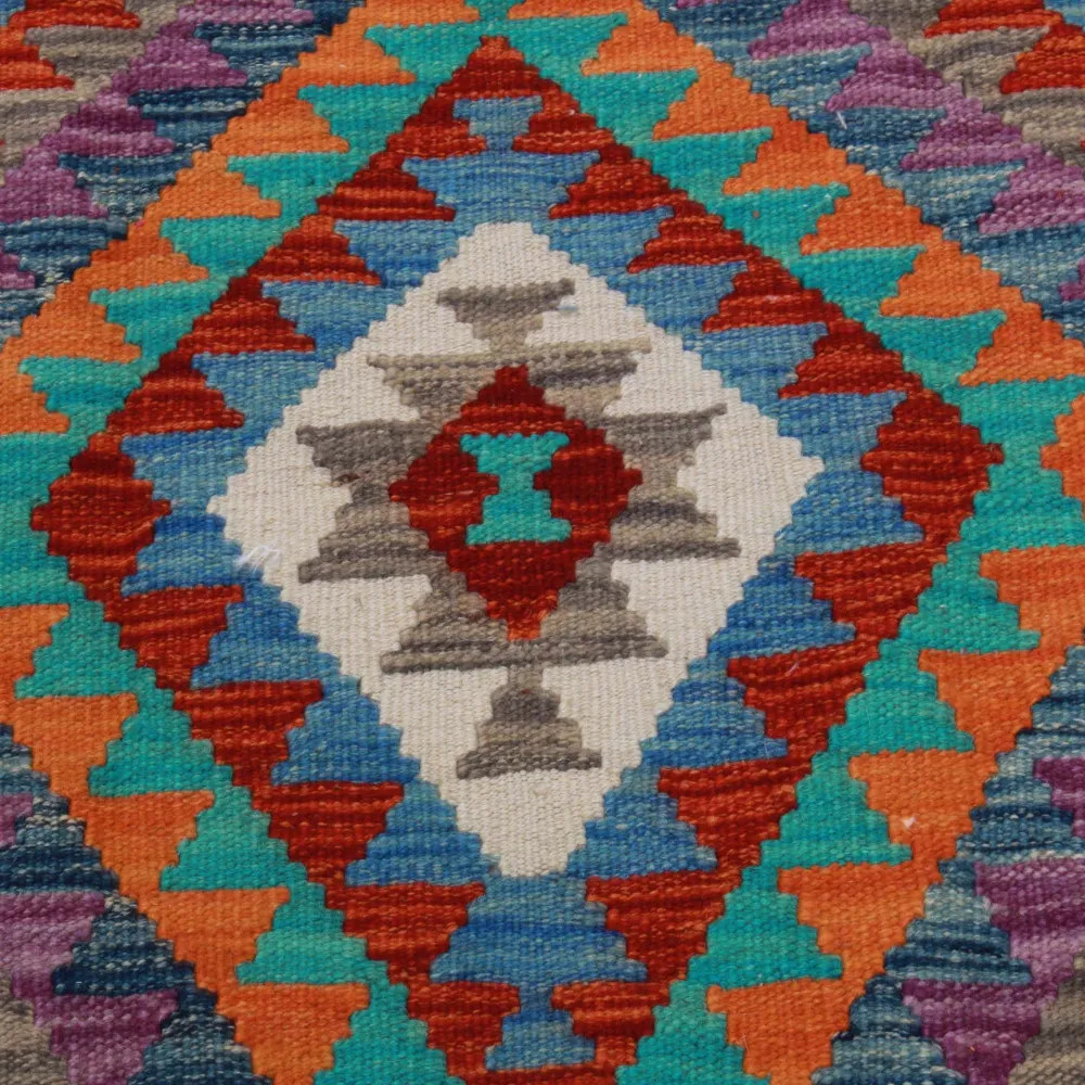 Buying the perfect Kelim rug can sometimes be a difficult task, because each piece has an extraordinary beauty. At CarpetDepo Kelim shop, you will find a uniquely rich selection of small size Chobi Kelim rugs that can be a real decoration of any home. With its dazzling colours and patterns, a hand woven Kilim rug will make any room stunning. Made from Afghan wool, the varied colours and patterns of Kelim rugs are perfect for any room or even your wardrobe. The hand woven rugs are easy to vacuum and keep clean, so maintenance will be a breeze. Chobi Kelims are made from 100% wool which guarantees outstanding durability and long life. These Kilims are made in the Maymanah Province of Afghanistan, where the Kelims are washed four times after the manufacturing process to ensure that the final colour remains durable and vibrant. Kilim was originally a warming textile that was used by nomadic tribes in their tents. The light weight of the wool Kelim rug not only allows it to decorate floors, but when hung on a wall it can also be an excellent decorative element to adorn walls. The quality of the Afghan Kelim is unparalleled, so you can be sure to enjoy its beauty for a long time to come. Thanks to the delicate hand weaving, each Chobi Kelim rug will be a unique piece in your home, creating a special atmosphere. The CarpetDepo Kelim shop offers a wide range of beautiful and high quality wool Kelim rugs. If the Chobi Kelim carpet you have purchased does not suit your home perfectly, CarpetDepo offers you free return delivery of your Kelim, so you can choose and buy your wool Kelim rug without any risk.