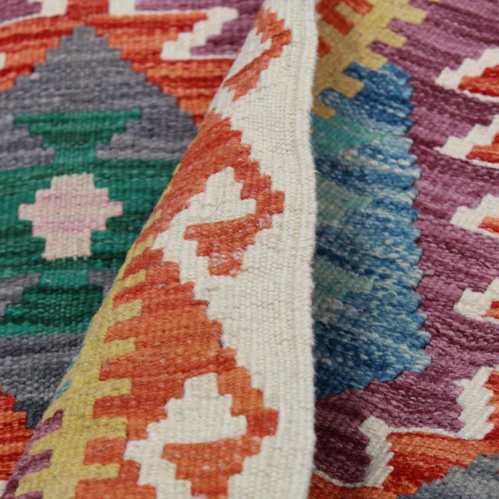 • Hand woven Afghan Kelim rug for a cozy home atmosphere