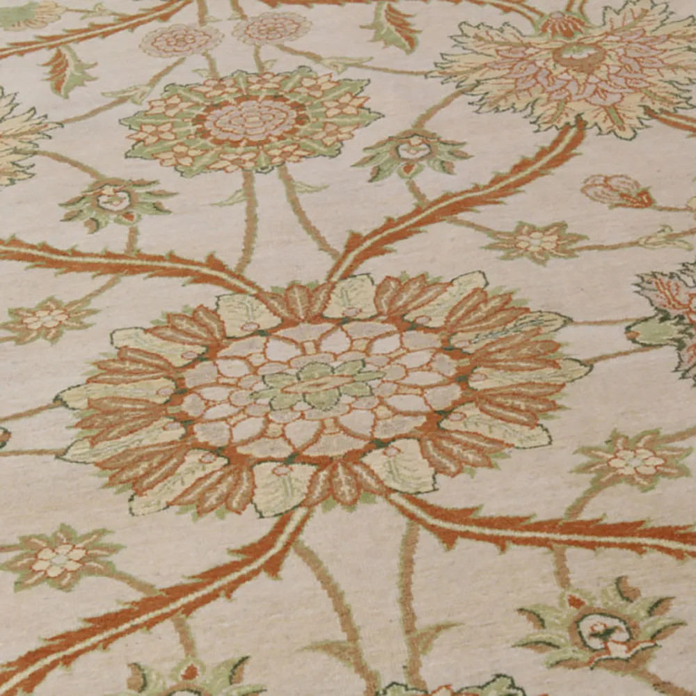 The history of Iranian carpets has evolved and improved over the centuries. Hand knotted carpets have always been an integral part of Persian culture and identity, and the knotting techniques have been passed down from generation to generation. During the Sassanid Empire (224 - 651 AD), carpet weaving became a true art, and the finest pieces were used in the royal courts, palaces and mosques of the empire. During the period of Islamic conquest and the Caliphate (from the 7th century onwards), Persian carpets gained new inspiration from Arab artistic influences. Islamic decorative motifs, geometric shapes and calligraphy appeared in the patterns of the carpets and further enriched the visual world of handmade Persian carpets. During the Safavid dynasty (1501-1736), Persian carpet weaving reached new heights. During this period, a system of carpet production was established that extended to all corners of the empire. The city of Isfahan became the centre of carpet making, and Persian carpets of this period were renowned throughout the world for their detailed designs, sophisticated techniques and high quality.