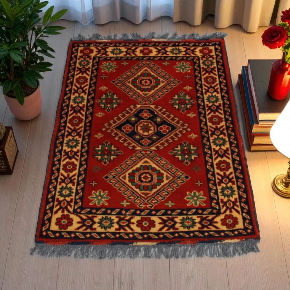 Oriental carpet Caucasian Kargai 62x93 handmade Afghan wool carpet