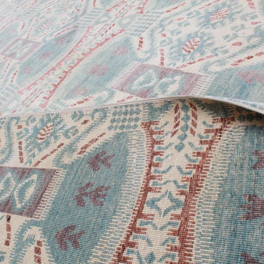 The Aikat wool carpet can be vacuum cleaned immediately after laying. Vacuum according to the direction of the fibre and on the lowest setting. This applies to all oriental carpets. Cleaning does not require great expertise. You should not wait for dirt to dry on the carpet. You can remove most dirt from the carpet yourself with a slightly damp cloth. But you can also use commercially available carpet cleaning foam, which is suitable for cleaning wool fabrics. However, you should leave the major cleaning to professional carpet cleaning companies. Do not place heavy furniture on the carpet, especially furniture with thin soles. These can damage the carpet over time.