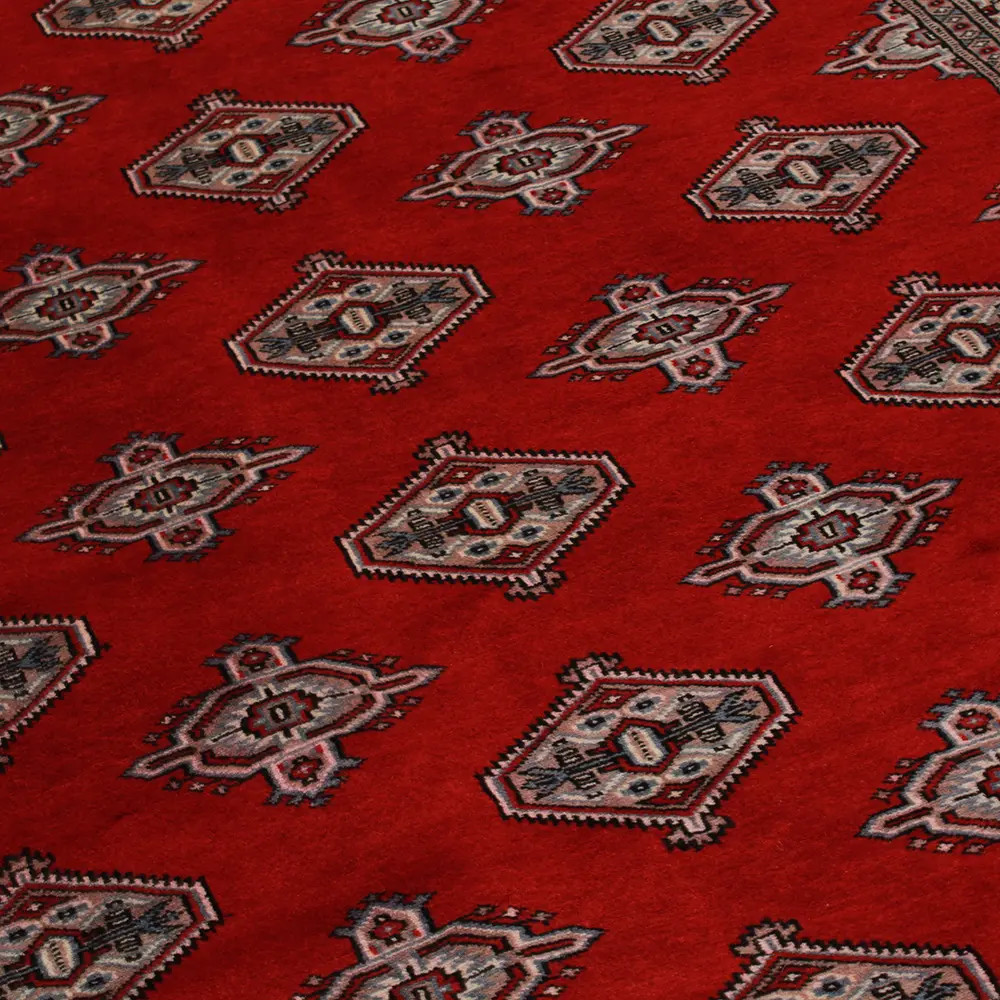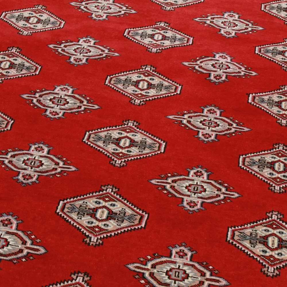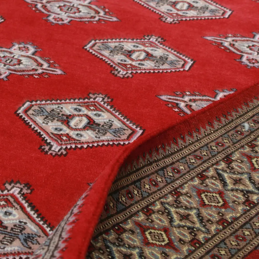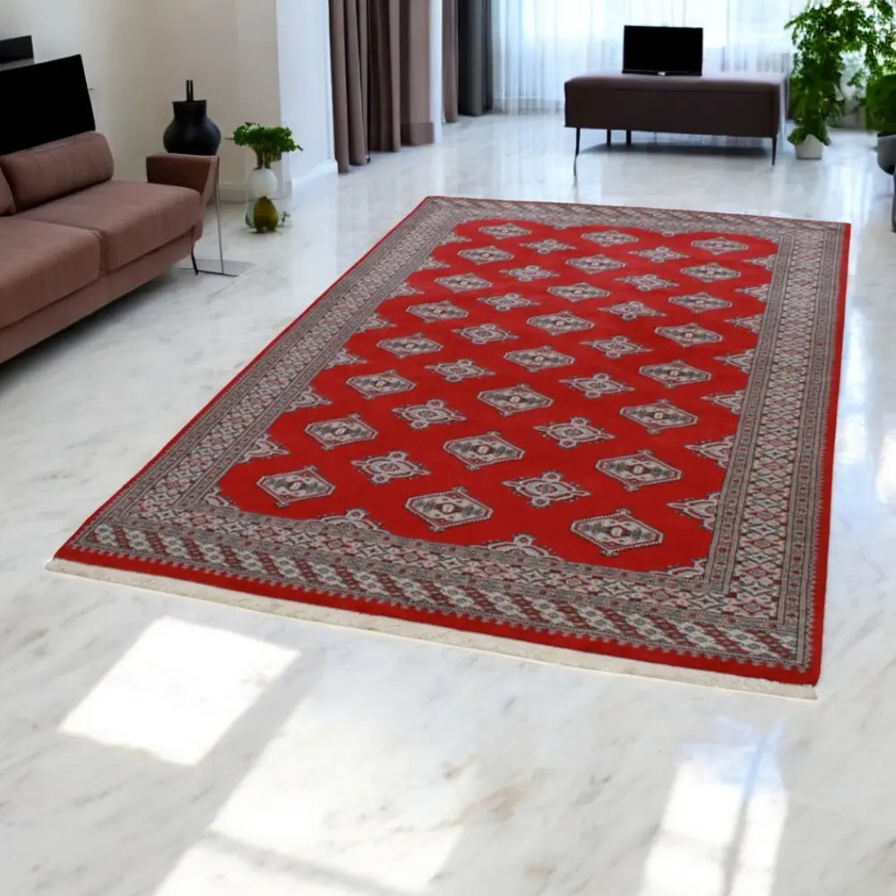 Pakistani carpet is made in the provinces of Punjab and Sindh. Reflecting a centuries-old tradition, this oriental carpet is a tribute to the craftsmanship and artistry of artisans. Pakistani carpets are renowned worldwide for their quality and carry the rich cultural heritage of Pakistan. The design and manufacturing techniques of this oriental carpet originate from the Turkmen people, who traded them in the old carpet market of the famous city of Bukhara. One of the most famous designs (Bukhara) takes its name from here and has been a defining feature of these beautiful oriental carpets ever since. Pakistani carpets are made from New Zealand Merino wool, which provides outstanding quality and durability. Thanks to their dense knotting, they are long-lasting and resistant to wear and tear from everyday use. This elegant rug is now considered one of the finest wool rugs in Pakistan. After being made and sheared, the carpet is washed four times and then carefully dried to retain its vibrant colours and colour fastness. With their geometric patterns and elegant colours, they add a unique ambience to your home, whether it's a living room carpet to enhance the elegance of the room or a bedroom carpet that adds comfort and softness to your steps. Also, an ideal choice for hallways is the Pakistani runner carpet. If you are looking for a unique oriental carpet that is made of quality material and shows artistic craftsmanship, Pakistani wool carpets are the perfect choice. The harmonious combination of sophisticated patterns and vibrant colours will create a magical atmosphere in any part of the room. A Pakistani carpet is not only aesthetically pleasing but also extremely practical. Its densely knotted surface is durable and resistant, allowing it to remain in beautiful condition for many years. In addition, the natural properties of the wool material allow it to insulate the floor, giving it excellent thermal insulation properties. Pakistani carpets are available in a wide range of sizes and shapes, so everyone can find the best one for their home.