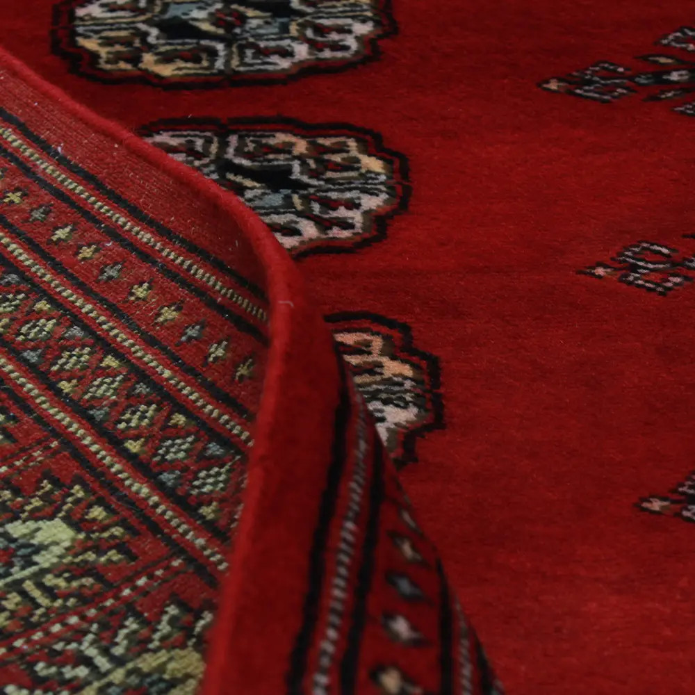 Pakistani carpet is made in the provinces of Punjab and Sindh. Reflecting a centuries-old tradition, this oriental carpet is a tribute to the craftsmanship and artistry of artisans. Pakistani carpets are renowned worldwide for their quality and carry the rich cultural heritage of Pakistan. The design and manufacturing techniques of this oriental carpet originate from the Turkmen people, who traded them in the old carpet market of the famous city of Bukhara. One of the most famous designs (Bukhara) takes its name from here and has been a defining feature of these beautiful oriental carpets ever since. Pakistani carpets are made from New Zealand Merino wool, which provides outstanding quality and durability. Thanks to their dense knotting, they are long-lasting and resistant to wear and tear from everyday use. This elegant rug is now considered one of the finest wool rugs in Pakistan. After being made and sheared, the carpet is washed four times and then carefully dried to retain its vibrant colours and colour fastness. With their geometric patterns and elegant colours, they add a unique ambience to your home, whether it's a living room carpet to enhance the elegance of the room or a bedroom carpet that adds comfort and softness to your steps. Also, an ideal choice for hallways is the Pakistani runner carpet. If you are looking for a unique oriental carpet that is made of quality material and shows artistic craftsmanship, Pakistani wool carpets are the perfect choice. The harmonious combination of sophisticated patterns and vibrant colours will create a magical atmosphere in any part of the room. A Pakistani carpet is not only aesthetically pleasing but also extremely practical. Its densely knotted surface is durable and resistant, allowing it to remain in beautiful condition for many years. In addition, the natural properties of the wool material allow it to insulate the floor, giving it excellent thermal insulation properties. Pakistani carpets are available in a wide range of sizes and shapes, so everyone can find the best one for their home.