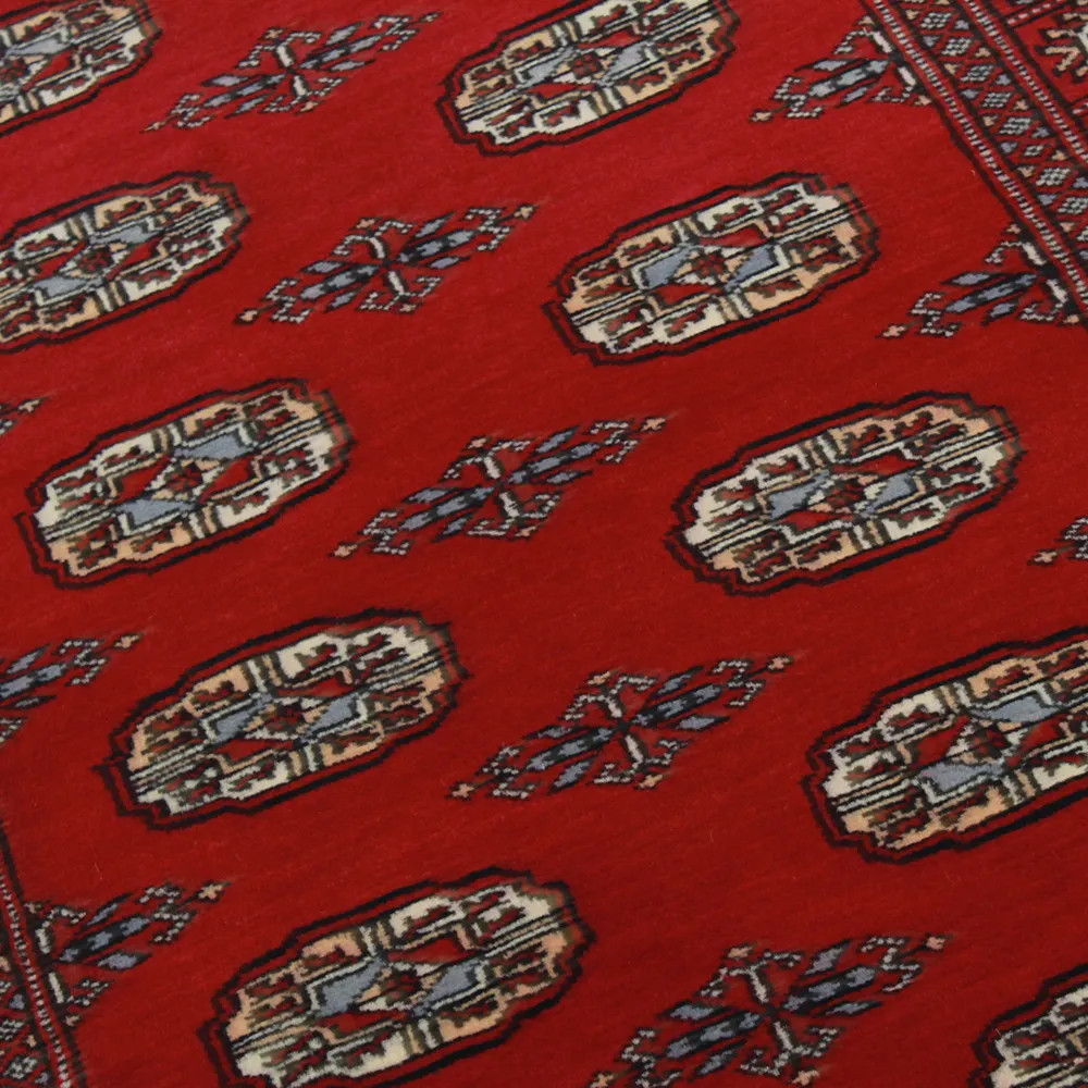 Pakistani carpet is made in the provinces of Punjab and Sindh. Reflecting a centuries-old tradition, this oriental carpet is a tribute to the craftsmanship and artistry of artisans. Pakistani carpets are renowned worldwide for their quality and carry the rich cultural heritage of Pakistan. The design and manufacturing techniques of this oriental carpet originate from the Turkmen people, who traded them in the old carpet market of the famous city of Bukhara. One of the most famous designs (Bukhara) takes its name from here and has been a defining feature of these beautiful oriental carpets ever since. Pakistani carpets are made from New Zealand Merino wool, which provides outstanding quality and durability. Thanks to their dense knotting, they are long-lasting and resistant to wear and tear from everyday use. This elegant rug is now considered one of the finest wool rugs in Pakistan. After being made and sheared, the carpet is washed four times and then carefully dried to retain its vibrant colours and colour fastness. With their geometric patterns and elegant colours, they add a unique ambience to your home, whether it's a living room carpet to enhance the elegance of the room or a bedroom carpet that adds comfort and softness to your steps. Also, an ideal choice for hallways is the Pakistani runner carpet. If you are looking for a unique oriental carpet that is made of quality material and shows artistic craftsmanship, Pakistani wool carpets are the perfect choice. The harmonious combination of sophisticated patterns and vibrant colours will create a magical atmosphere in any part of the room. A Pakistani carpet is not only aesthetically pleasing but also extremely practical. Its densely knotted surface is durable and resistant, allowing it to remain in beautiful condition for many years. In addition, the natural properties of the wool material allow it to insulate the floor, giving it excellent thermal insulation properties. Pakistani carpets are available in a wide range of sizes and shapes, so everyone can find the best one for their home.