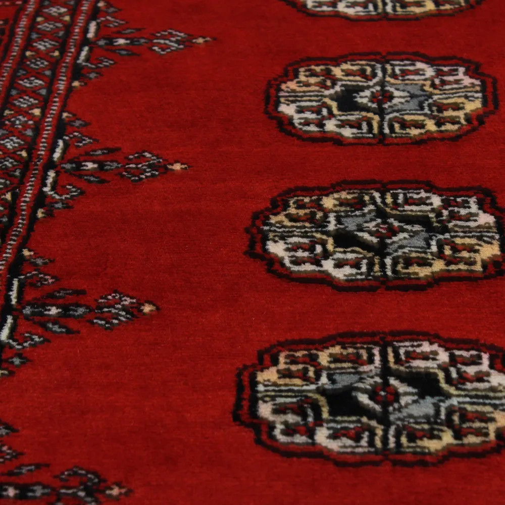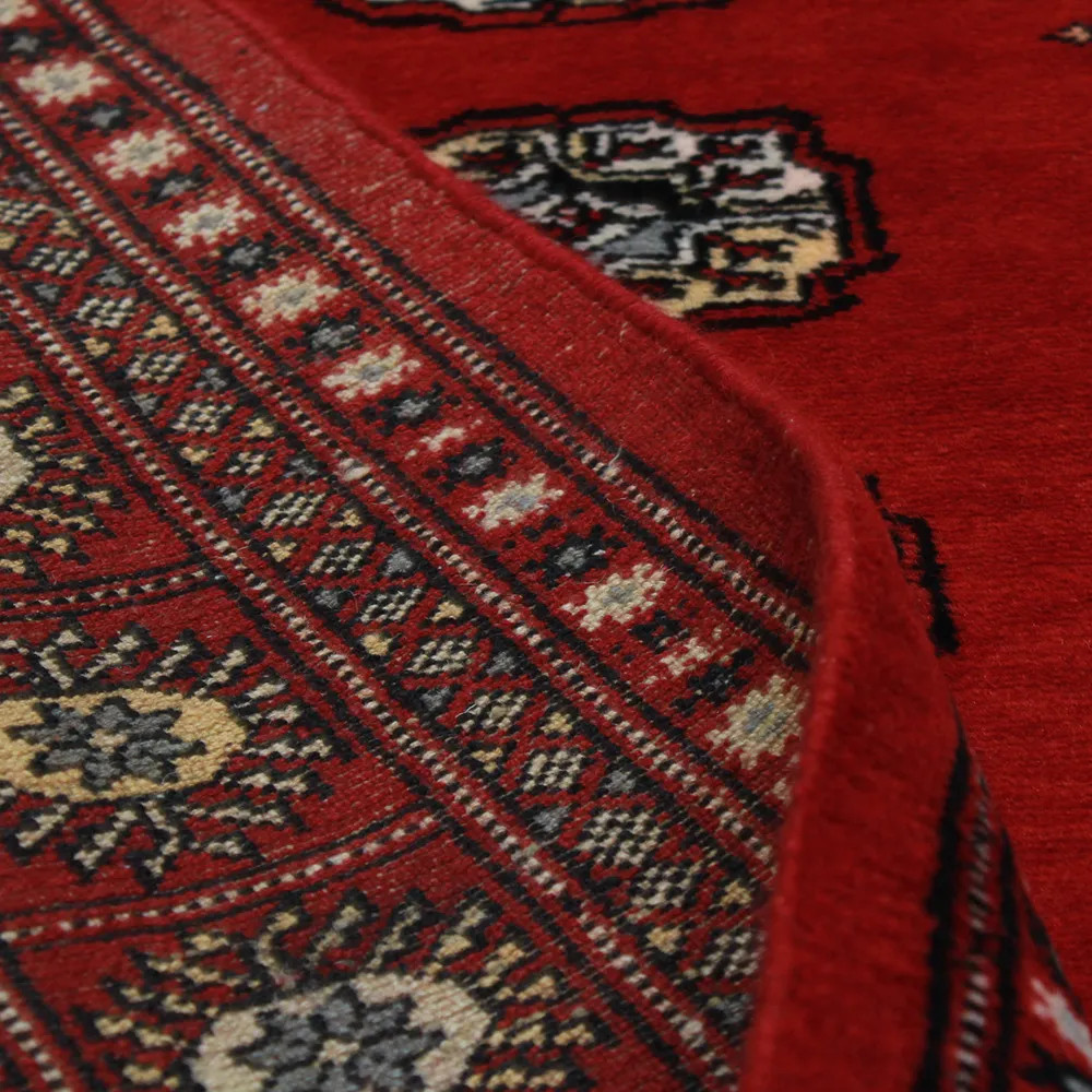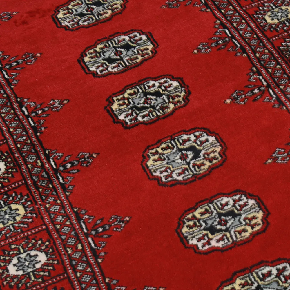 Pakistani carpet is made in the provinces of Punjab and Sindh. Reflecting a centuries-old tradition, this oriental carpet is a tribute to the craftsmanship and artistry of artisans. Pakistani carpets are renowned worldwide for their quality and carry the rich cultural heritage of Pakistan. The design and manufacturing techniques of this oriental carpet originate from the Turkmen people, who traded them in the old carpet market of the famous city of Bukhara. One of the most famous designs (Bukhara) takes its name from here and has been a defining feature of these beautiful oriental carpets ever since. Pakistani carpets are made from New Zealand Merino wool, which provides outstanding quality and durability. Thanks to their dense knotting, they are long-lasting and resistant to wear and tear from everyday use. This elegant rug is now considered one of the finest wool rugs in Pakistan. After being made and sheared, the carpet is washed four times and then carefully dried to retain its vibrant colours and colour fastness. With their geometric patterns and elegant colours, they add a unique ambience to your home, whether it's a living room carpet to enhance the elegance of the room or a bedroom carpet that adds comfort and softness to your steps. Also, an ideal choice for hallways is the Pakistani runner carpet. If you are looking for a unique oriental carpet that is made of quality material and shows artistic craftsmanship, Pakistani wool carpets are the perfect choice. The harmonious combination of sophisticated patterns and vibrant colours will create a magical atmosphere in any part of the room. A Pakistani carpet is not only aesthetically pleasing but also extremely practical. Its densely knotted surface is durable and resistant, allowing it to remain in beautiful condition for many years. In addition, the natural properties of the wool material allow it to insulate the floor, giving it excellent thermal insulation properties. Pakistani carpets are available in a wide range of sizes and shapes, so everyone can find the best one for their home.