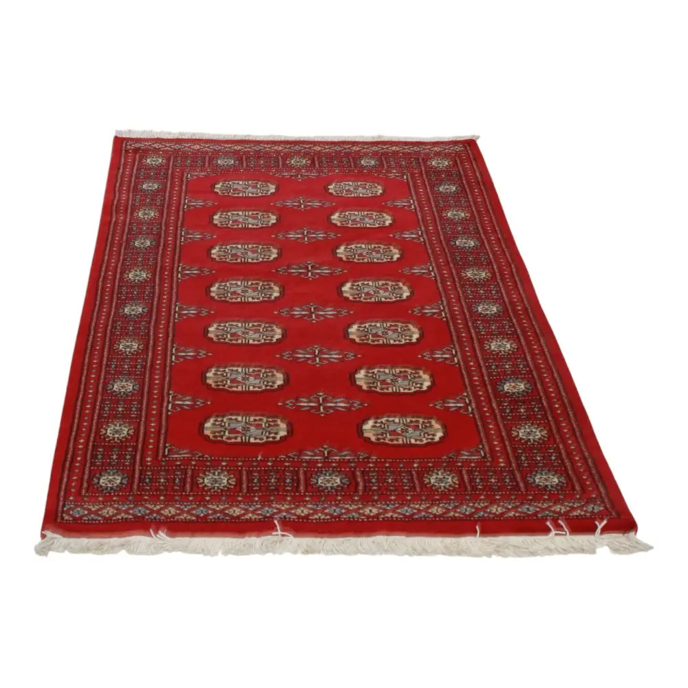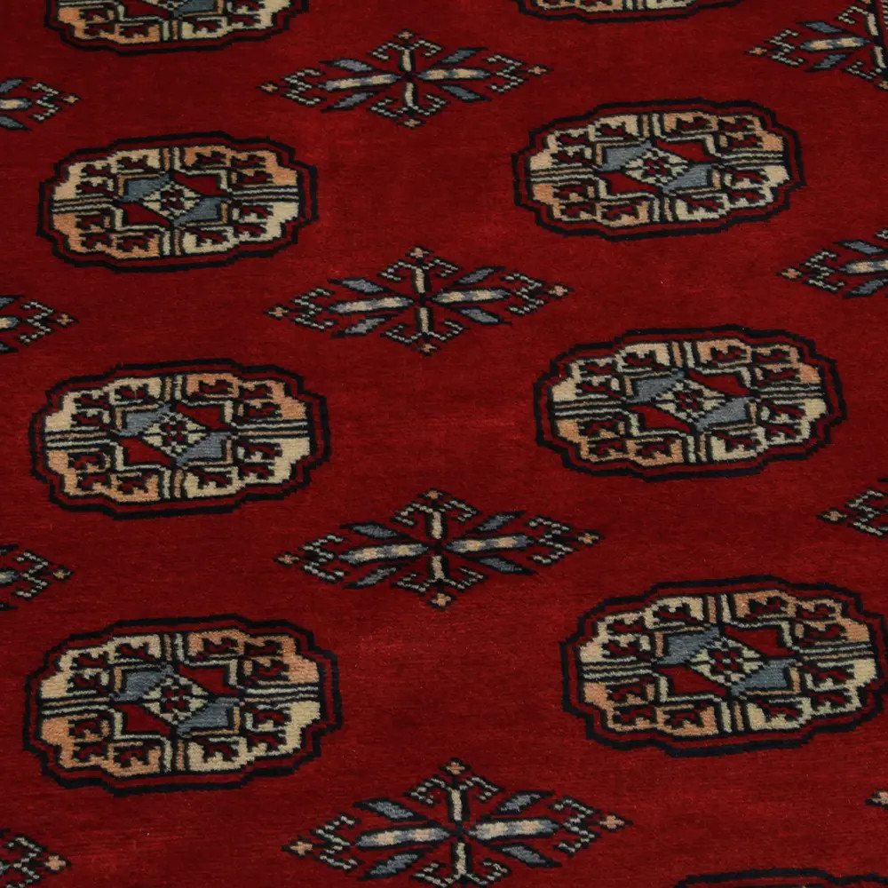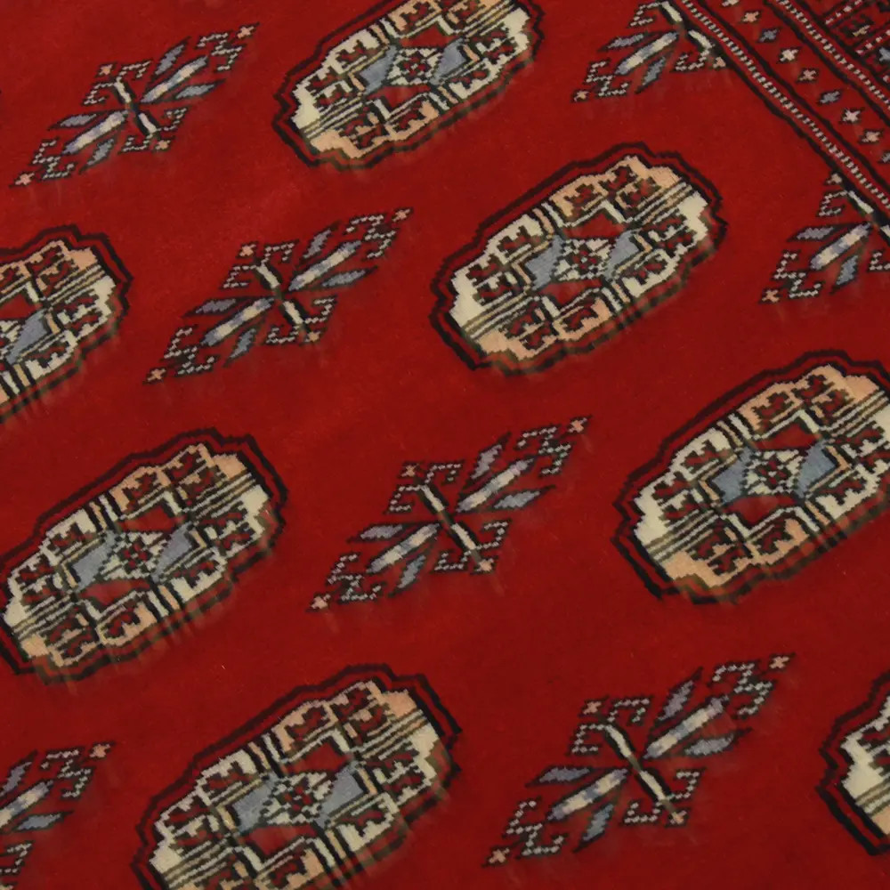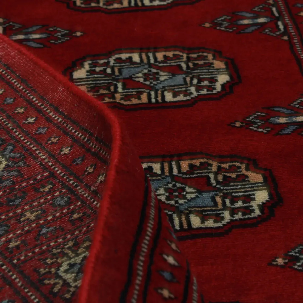 Pakistani carpet is made in the provinces of Punjab and Sindh. Reflecting a centuries-old tradition, this oriental carpet is a tribute to the craftsmanship and artistry of artisans. Pakistani carpets are renowned worldwide for their quality and carry the rich cultural heritage of Pakistan. The design and manufacturing techniques of this oriental carpet originate from the Turkmen people, who traded them in the old carpet market of the famous city of Bukhara. One of the most famous designs (Bukhara) takes its name from here and has been a defining feature of these beautiful oriental carpets ever since. Pakistani carpets are made from New Zealand Merino wool, which provides outstanding quality and durability. Thanks to their dense knotting, they are long-lasting and resistant to wear and tear from everyday use. This elegant rug is now considered one of the finest wool rugs in Pakistan. After being made and sheared, the carpet is washed four times and then carefully dried to retain its vibrant colours and colour fastness. With their geometric patterns and elegant colours, they add a unique ambience to your home, whether it's a living room carpet to enhance the elegance of the room or a bedroom carpet that adds comfort and softness to your steps. Also, an ideal choice for hallways is the Pakistani runner carpet. If you are looking for a unique oriental carpet that is made of quality material and shows artistic craftsmanship, Pakistani wool carpets are the perfect choice. The harmonious combination of sophisticated patterns and vibrant colours will create a magical atmosphere in any part of the room. A Pakistani carpet is not only aesthetically pleasing but also extremely practical. Its densely knotted surface is durable and resistant, allowing it to remain in beautiful condition for many years. In addition, the natural properties of the wool material allow it to insulate the floor, giving it excellent thermal insulation properties. Pakistani carpets are available in a wide range of sizes and shapes, so everyone can find the best one for their home.