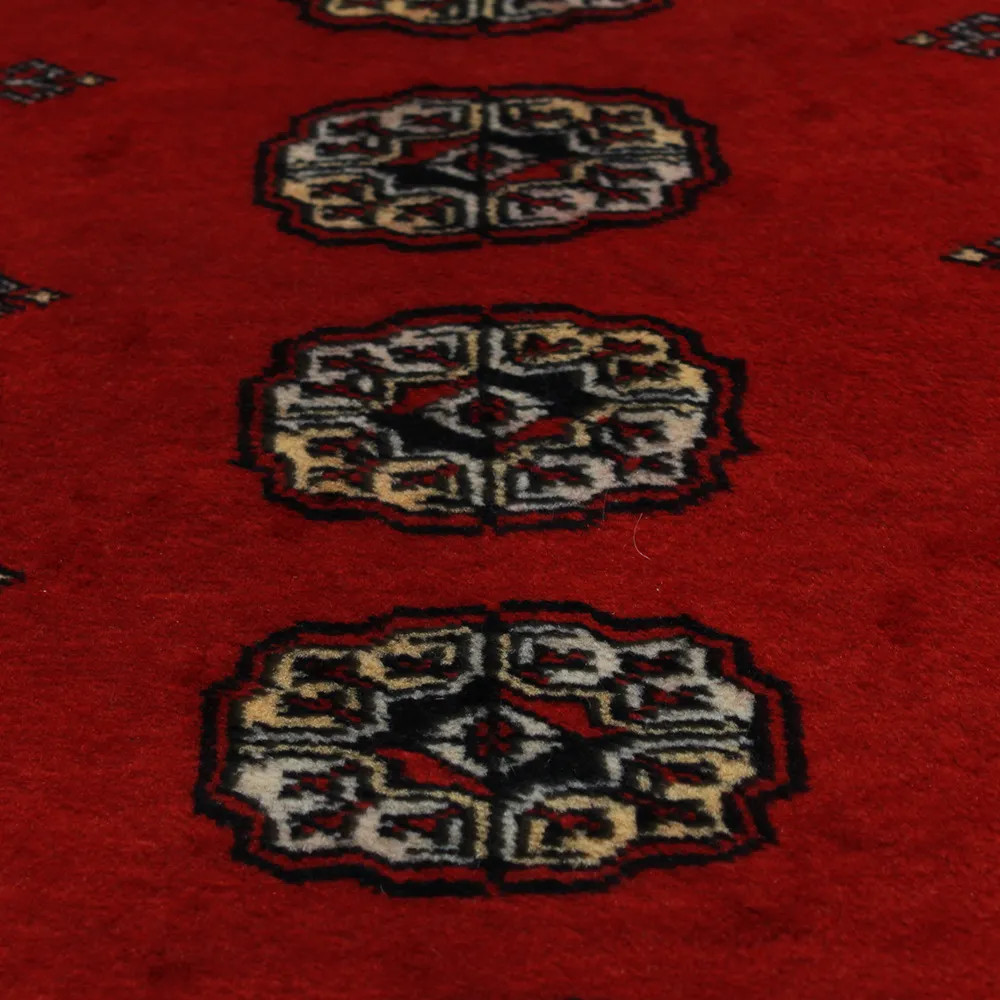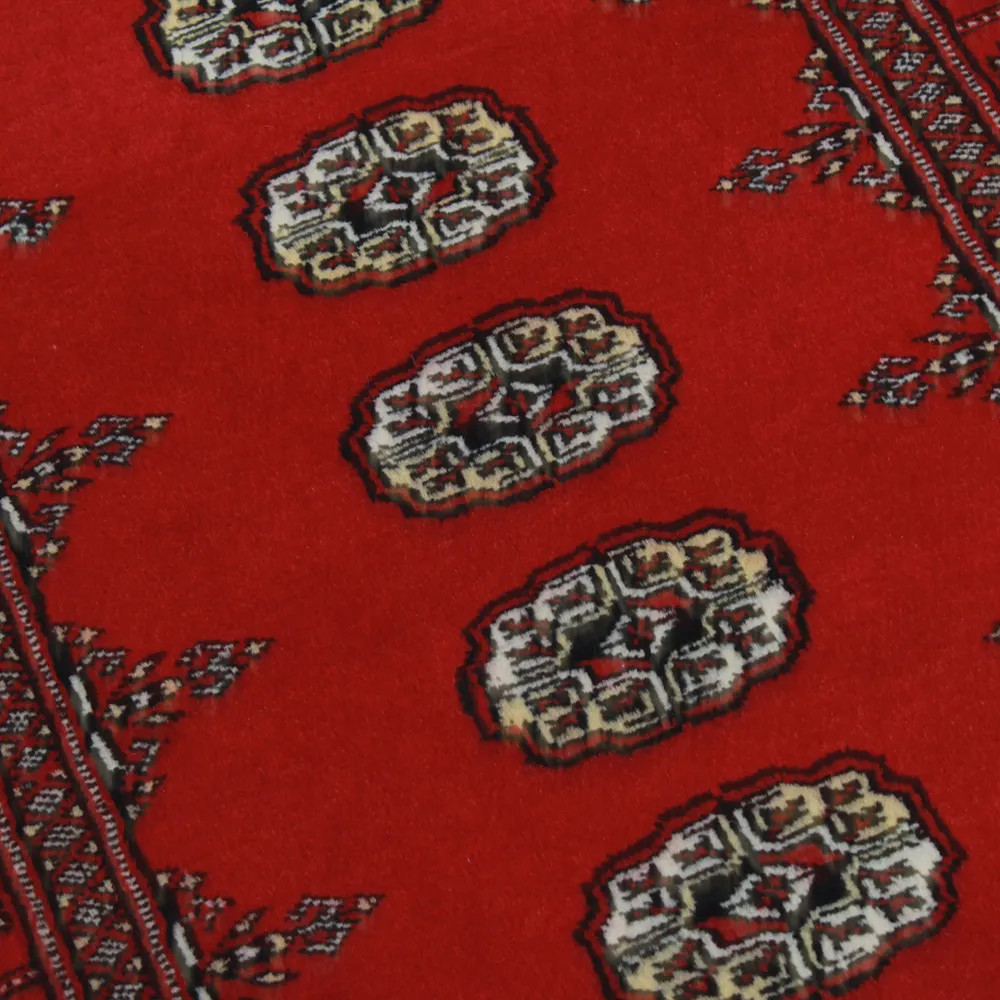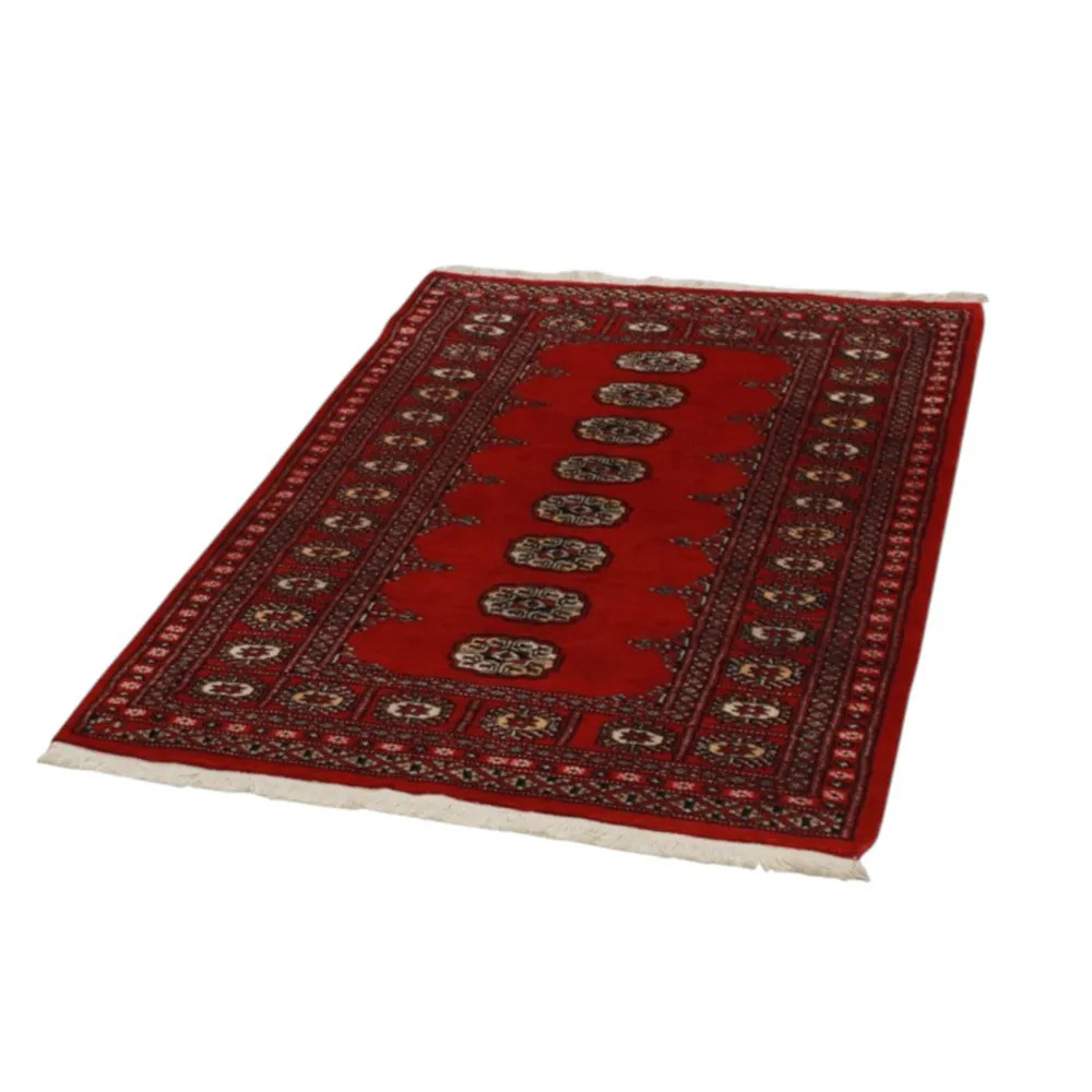 Pakistani carpet is made in the provinces of Punjab and Sindh. Reflecting a centuries-old tradition, this oriental carpet is a tribute to the craftsmanship and artistry of artisans. Pakistani carpets are renowned worldwide for their quality and carry the rich cultural heritage of Pakistan. The design and manufacturing techniques of this oriental carpet originate from the Turkmen people, who traded them in the old carpet market of the famous city of Bukhara. One of the most famous designs (Bukhara) takes its name from here and has been a defining feature of these beautiful oriental carpets ever since. Pakistani carpets are made from New Zealand Merino wool, which provides outstanding quality and durability. Thanks to their dense knotting, they are long-lasting and resistant to wear and tear from everyday use. This elegant rug is now considered one of the finest wool rugs in Pakistan. After being made and sheared, the carpet is washed four times and then carefully dried to retain its vibrant colours and colour fastness. With their geometric patterns and elegant colours, they add a unique ambience to your home, whether it's a living room carpet to enhance the elegance of the room or a bedroom carpet that adds comfort and softness to your steps. Also, an ideal choice for hallways is the Pakistani runner carpet. If you are looking for a unique oriental carpet that is made of quality material and shows artistic craftsmanship, Pakistani wool carpets are the perfect choice. The harmonious combination of sophisticated patterns and vibrant colours will create a magical atmosphere in any part of the room. A Pakistani carpet is not only aesthetically pleasing but also extremely practical. Its densely knotted surface is durable and resistant, allowing it to remain in beautiful condition for many years. In addition, the natural properties of the wool material allow it to insulate the floor, giving it excellent thermal insulation properties. Pakistani carpets are available in a wide range of sizes and shapes, so everyone can find the best one for their home.