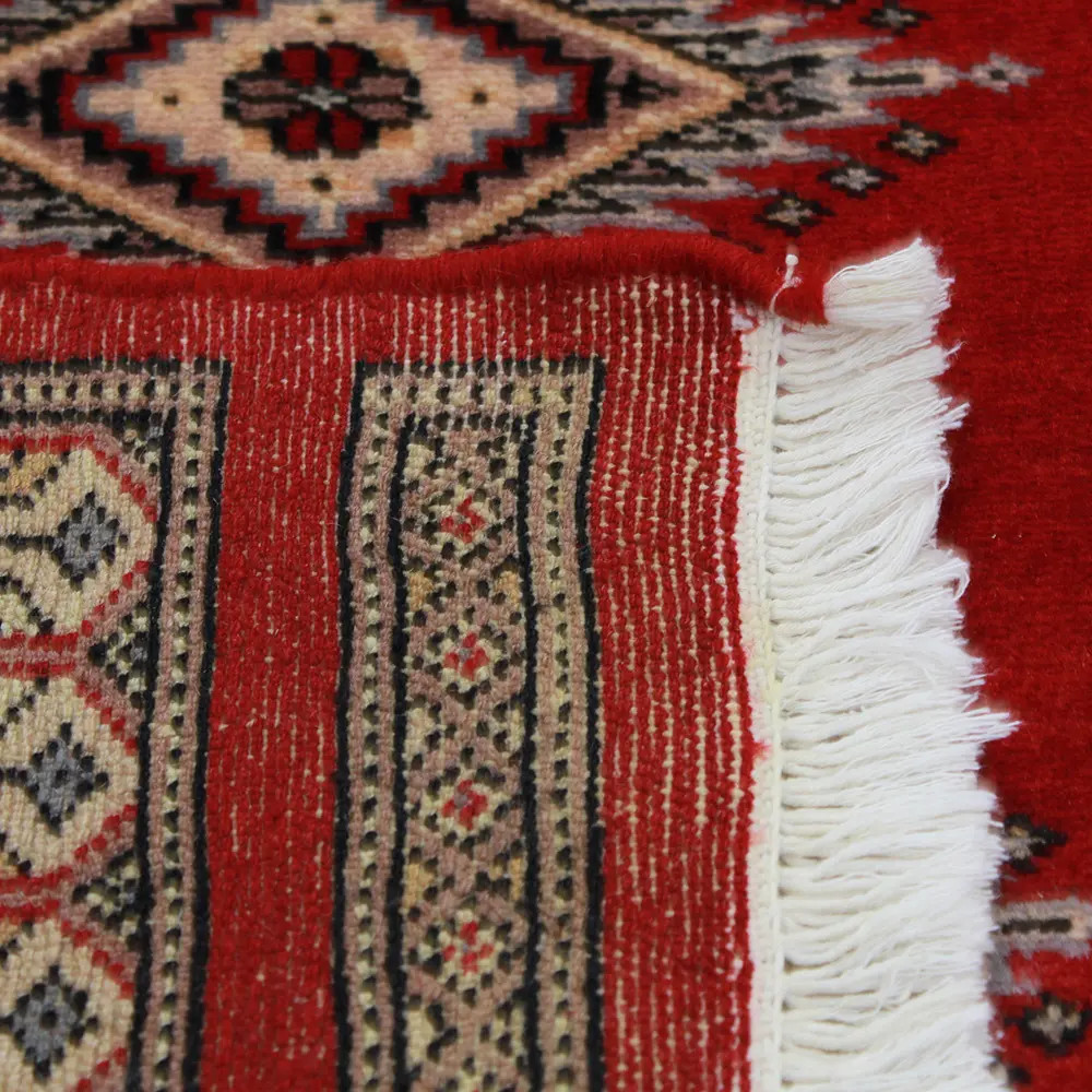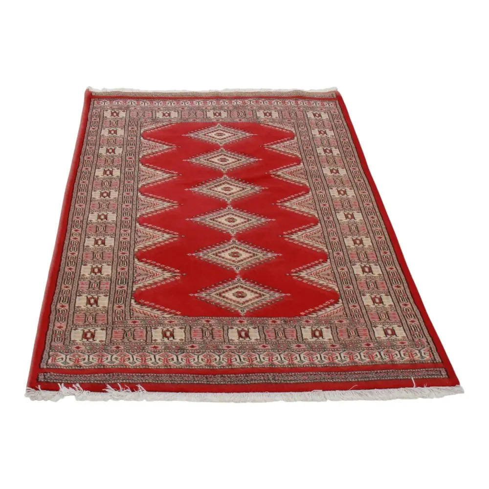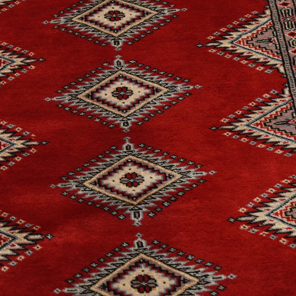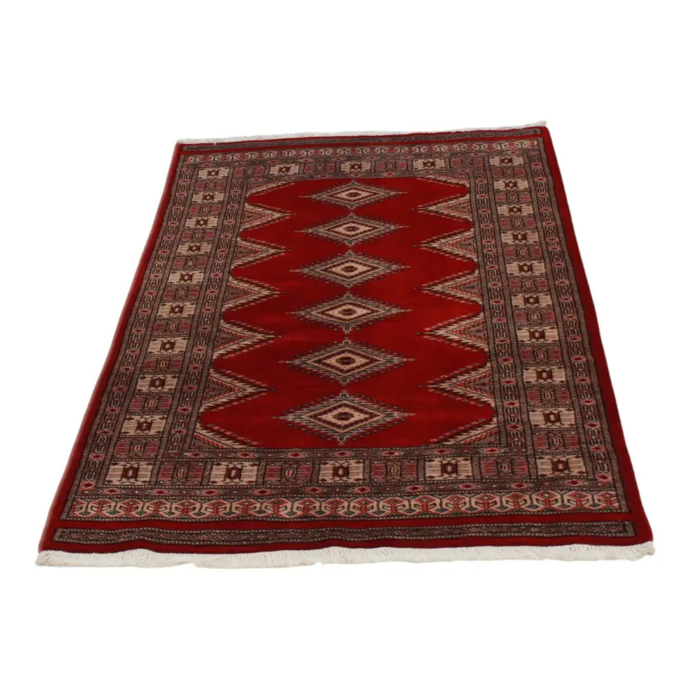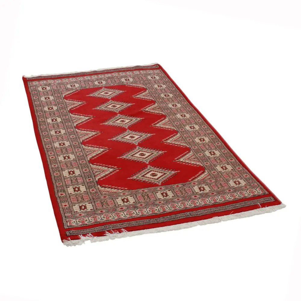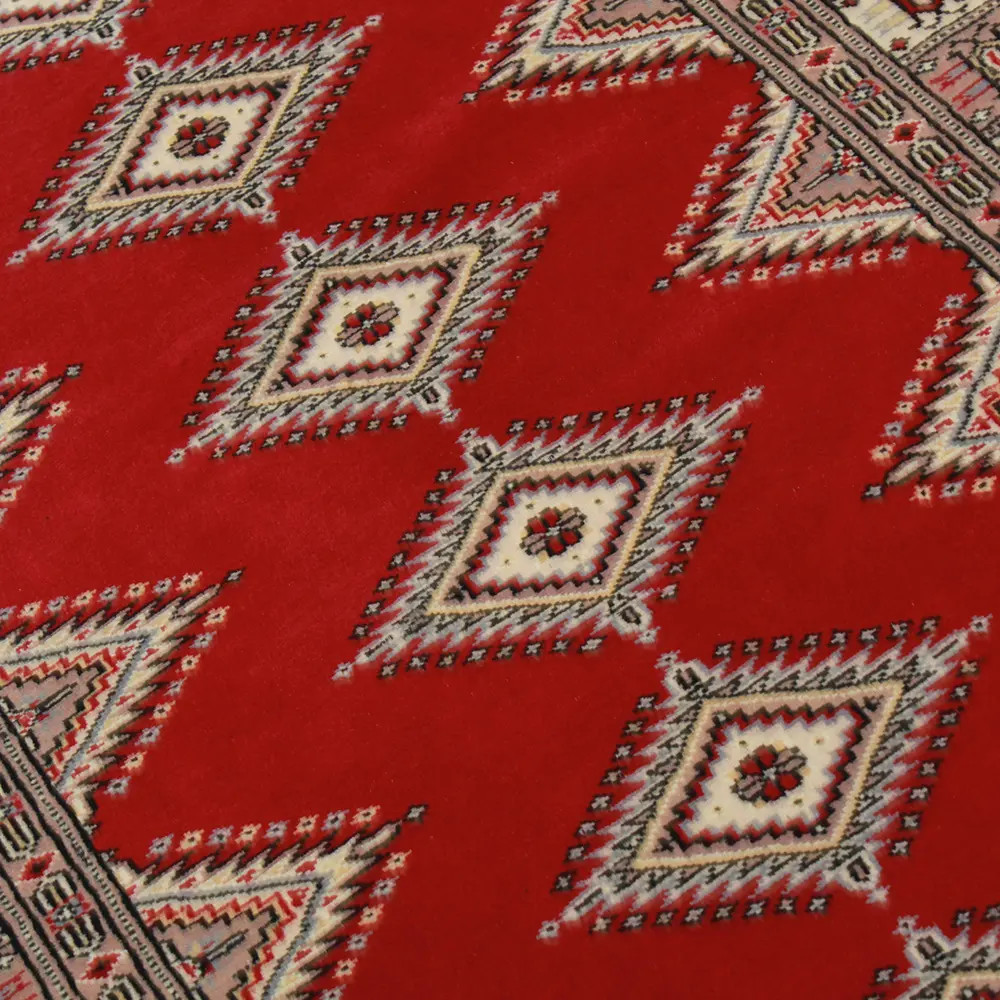Pakistani carpet is made in the provinces of Punjab and Sindh. Reflecting a centuries-old tradition, this oriental carpet is a tribute to the craftsmanship and artistry of artisans. Pakistani carpets are renowned worldwide for their quality and carry the rich cultural heritage of Pakistan. The design and manufacturing techniques of this oriental carpet originate from the Turkmen people, who traded them in the old carpet market of the famous city of Bukhara. One of the most famous designs (Bukhara) takes its name from here and has been a defining feature of these beautiful oriental carpets ever since. Pakistani carpets are made from New Zealand Merino wool, which provides outstanding quality and durability. Thanks to their dense knotting, they are long-lasting and resistant to wear and tear from everyday use. This elegant rug is now considered one of the finest wool rugs in Pakistan. After being made and sheared, the carpet is washed four times and then carefully dried to retain its vibrant colours and colour fastness. With their geometric patterns and elegant colours, they add a unique ambience to your home, whether it's a living room carpet to enhance the elegance of the room or a bedroom carpet that adds comfort and softness to your steps. Also, an ideal choice for hallways is the Pakistani runner carpet. If you are looking for a unique oriental carpet that is made of quality material and shows artistic craftsmanship, Pakistani wool carpets are the perfect choice. The harmonious combination of sophisticated patterns and vibrant colours will create a magical atmosphere in any part of the room. A Pakistani carpet is not only aesthetically pleasing but also extremely practical. Its densely knotted surface is durable and resistant, allowing it to remain in beautiful condition for many years. In addition, the natural properties of the wool material allow it to insulate the floor, giving it excellent thermal insulation properties. Pakistani carpets are available in a wide range of sizes and shapes, so everyone can find the best one for their home.