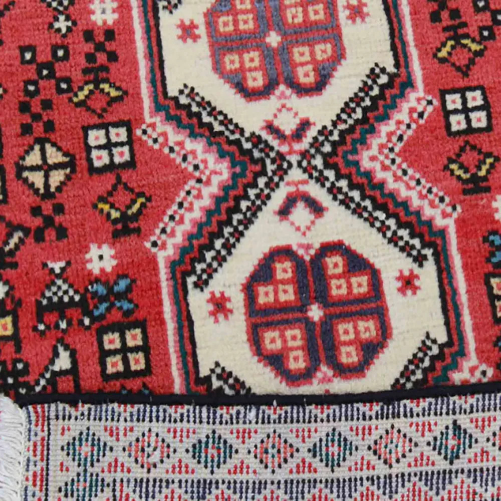 The colour palette of Abadeh Iranian carpets is based on warm and earthy tones, achieved with natural dyes. Shades of red, brown, blue and beige are common in the carpets and complement each other harmoniously. The most commonly used colours are red and navy blue, which are the basic colours of Abadeh carpets. These colours are not only aesthetically important, but also carry symbolic meaning, often representing nature and the richness of Persian culture. Abadeh Iranian rugs are mostly made from high quality wool, produced and processed by local nomads. The softness and durability of the wool contribute to the beauty and quality of these carpets, which are made to last for a long time. The backs of the rugs often show careful hand knotting, which highlights the high quality of the craftsmanship.