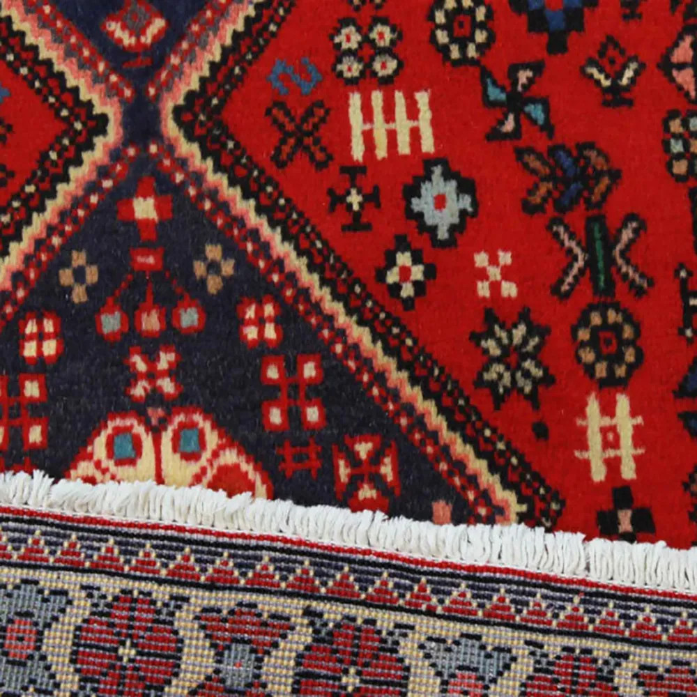 The colour palette of Abadeh Iranian carpets is based on warm and earthy tones, achieved with natural dyes. Shades of red, brown, blue and beige are common in the carpets and complement each other harmoniously. The most commonly used colours are red and navy blue, which are the basic colours of Abadeh carpets. These colours are not only aesthetically important, but also carry symbolic meaning, often representing nature and the richness of Persian culture. Abadeh Iranian rugs are mostly made from high quality wool, produced and processed by local nomads. The softness and durability of the wool contribute to the beauty and quality of these carpets, which are made to last for a long time. The backs of the rugs often show careful hand knotting, which highlights the high quality of the craftsmanship.