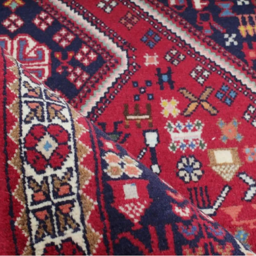 The colour palette of Abadeh Iranian carpets is based on warm and earthy tones, achieved with natural dyes. Shades of red, brown, blue and beige are common in the carpets and complement each other harmoniously. The most commonly used colours are red and navy blue, which are the basic colours of Abadeh carpets. These colours are not only aesthetically important, but also carry symbolic meaning, often representing nature and the richness of Persian culture. Abadeh Iranian rugs are mostly made from high quality wool, produced and processed by local nomads. The softness and durability of the wool contribute to the beauty and quality of these carpets, which are made to last for a long time. The backs of the rugs often show careful hand knotting, which highlights the high quality of the craftsmanship.