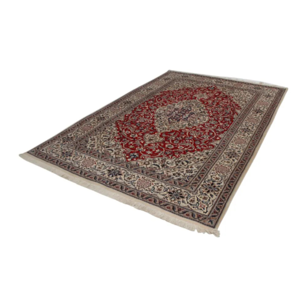 The special aesthetic value of Nain persian carpets is mainly due to their carefully designed patterns and motifs, which follow the best traditions of Iranian carpet weaving. The most common patterns include geometric shapes and nature-inspired floral motifs, iconic elements of Persian art. These motifs are created using intricate and precise knotting techniques, which enhance the delicacy and detail of the carpets. One of the most distinctive patterns is the central medallion, which is placed in the centre of the carpets and is surrounded by a symmetrical arrangement of flowers, indas and arabesques. The medallion shape and the harmony of the pattern around it symbolise perfection and balance, which is a major theme in Islamic art. The colour palette of Nain persian rugs is also outstanding, with soft pastels such as cream, ivory, light blue and grey often used. These colours accentuate the elegance and timeless style of the rugs, and blend perfectly with the delicate, detailed patterns. Iranian carpets are thus not only functional objects, but also have an artistic value that can be the jewel of any room.