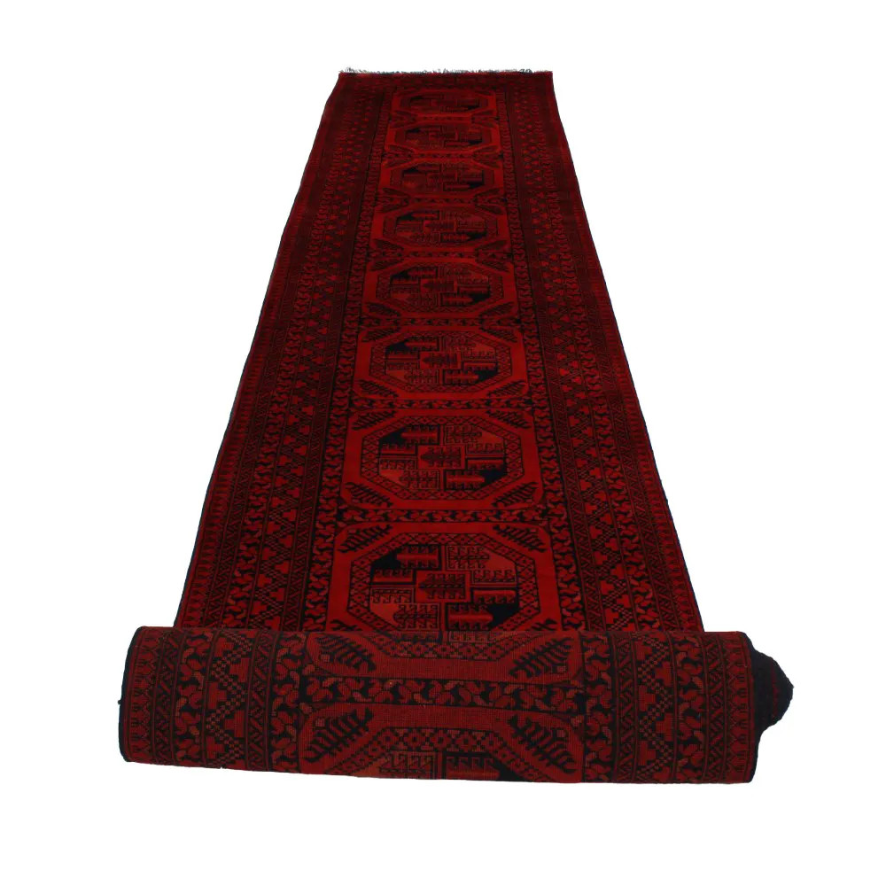The two most popular types of Afghan woollen carpet are Khal Mohammadi and Kargai. Afghan carpets are hand knotted by Turkmen in the northern part of Afghanistan. In some cases, this type of oriental carpet is also made in Pakistan by Turkmen who have migrated to Pakistan. The primary colours are dark red or brown in various shades. Many people believe that the denser and thicker the carpet, the better and more durable it is. In handmade oriental carpets, thickness is a matter of shearing. Durability is the result of the density of the knotting and the quality of the material. With their variety of patterns and colours, they give your home a unique feel as a living room or bedroom carpet. For hallways we have runner carpets that are less wide but longer.