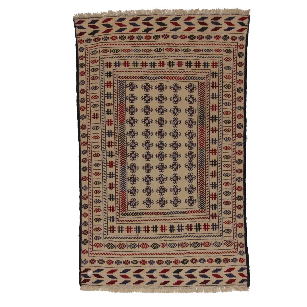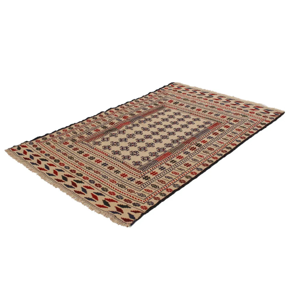 The Afghan tribal kilim carpet reflects the cultural heritage of Afghanistan. These masterpieces evoke the traditions and art of nomadic tribes. With their stunning antique designs, they will make a real showpiece in your home, either spread on the floor or hung on the wall as a wall rug. Each piece of the hand-woven tribal kilim carpet is unique. Used as a wall carpet, a tribal kilim rug can be a real decorative feature on any wall in your home. Geometric patterns and animal motifs contribute to the unique atmosphere and warmth of your home. The Afghan nomadic rug tells the story of the tribes' way of life and their traditions. A tribal wall rug is not only a decorative object, but also a precious handicraft that brings Afghan tribal art and culture closer to you directly through the walls of your home. The tribal kilim carpet is made from high quality wool, which ensures durability and easy cleaning. This nomadic carpet is the perfect choice if you want to create a unique and stunning interior design for your home.
