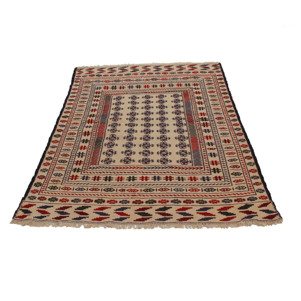 Afghan tribal Kilim carpets produced in Afghanistan stand out among the hand-woven Kilim carpets. This unique nomadic rug making tradition has its roots in Afghanistan and reflects the rich cultural heritage of the nomadic tribes. Today, workshops in the city of Herat, Afghanistan, produce these masterpieces, also known as Herati Beluch rugs. The tribal Kilim carpet is a true masterpiece, made by local artisans and carpet weavers. The city of Herat is famous in Afghanistan for its traditional hand-made carpet weaving, which has a long and rich history dating back centuries. The people of Herat have remained faithful to the traditional carpet weaving technique even today. Timeless weaving techniques and knowledge passed down through generations meet in the making of tribal kilim. The distinctive qualities and decorations of the Afghan Kilim rug are impressive. They are dominated by geometric or animal designs that reflect traditional Afghan design and nomadic traditions. The tribal Kilim carpet is therefore not only captivating in its beauty, but also in its rich cultural heritage.