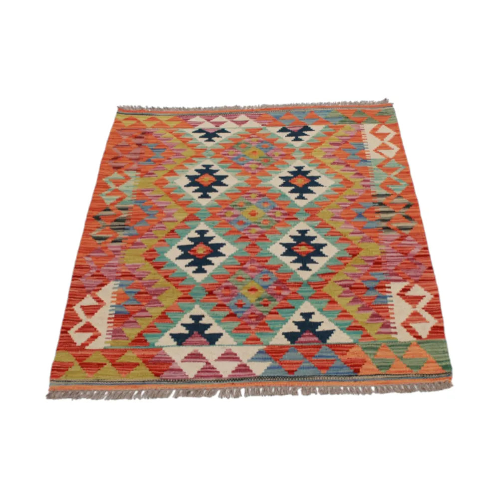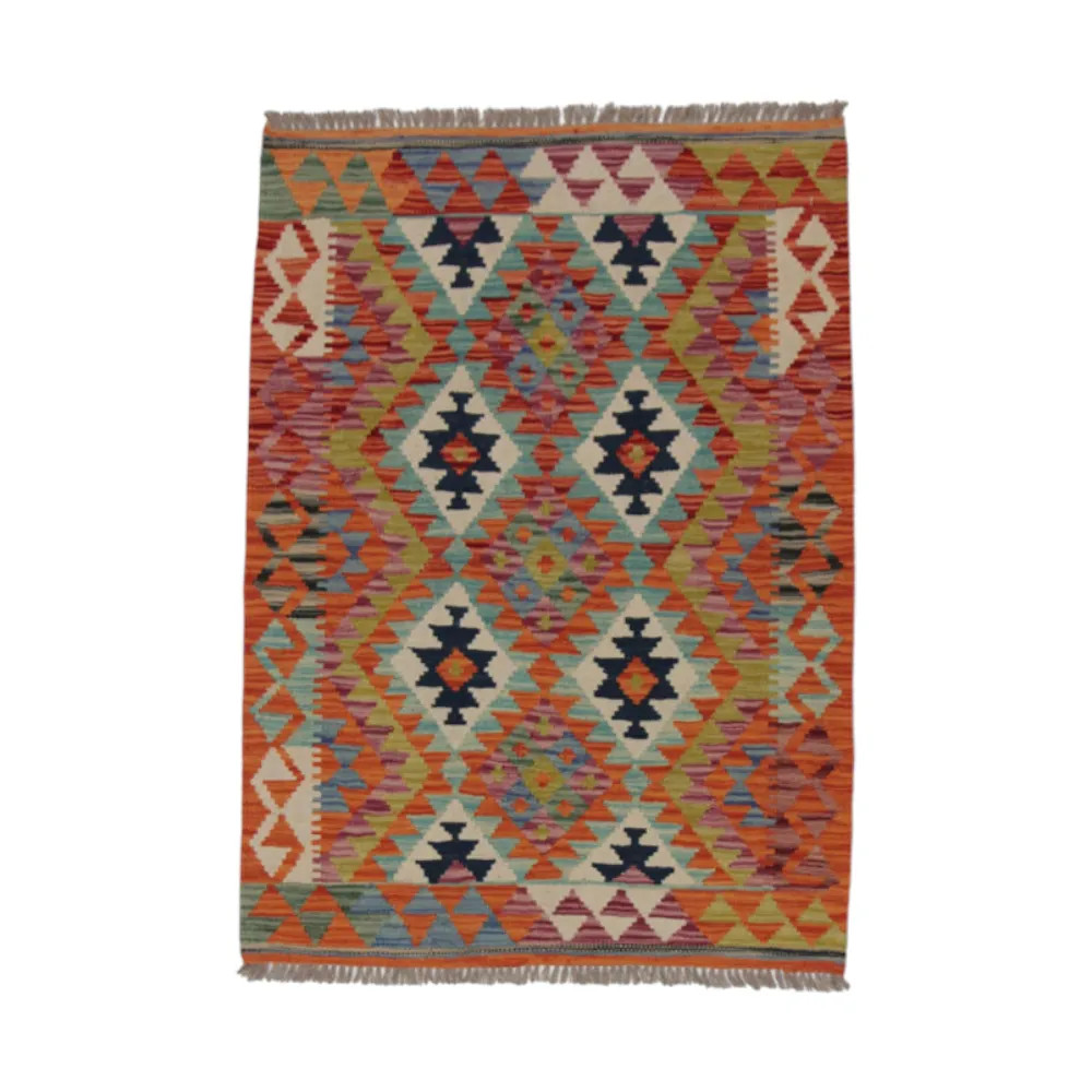 Afghan hand woven rugs, a masterpiece of Afghan craftsmanship, are highly appreciated and popular all over the world. These special hand woven rugs are typically denser and more compact than other types of Kelim due to a special weaving technique. This technique allows Afghan hand woven rugs to have a thinner texture and to be finished more quickly than knotted rugs. Chobi Kelim rug designs combine antique and modern elements, so that everyone can find a piece to suit their style. These hand woven rugs are particularly popular with interior designers as they blend harmoniously with the colours of most homes and are widely affordable due to their accessible price category. Chobi Kilim rugs can be used in a variety of ways to decorate a home, whether as a wall hanging rug or as a hallway rug. These ethnic rugs have a significant artistic and cultural value. Afghan hand woven rugs are not only aesthetically pleasing, but are also of great historical and cultural significance. Hand woven rugs preserve the rich tradition and heritage of Afghan craftsmanship, each one unique and unparalleled. The wool rugs, with their natural use of materials, help to create a homely and welcoming atmosphere.